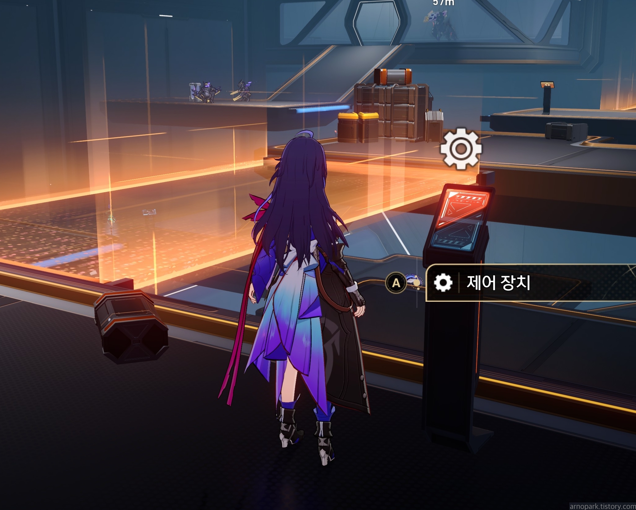 주황 다리 하나를 건넌 후, 장치를 작동시키면,
