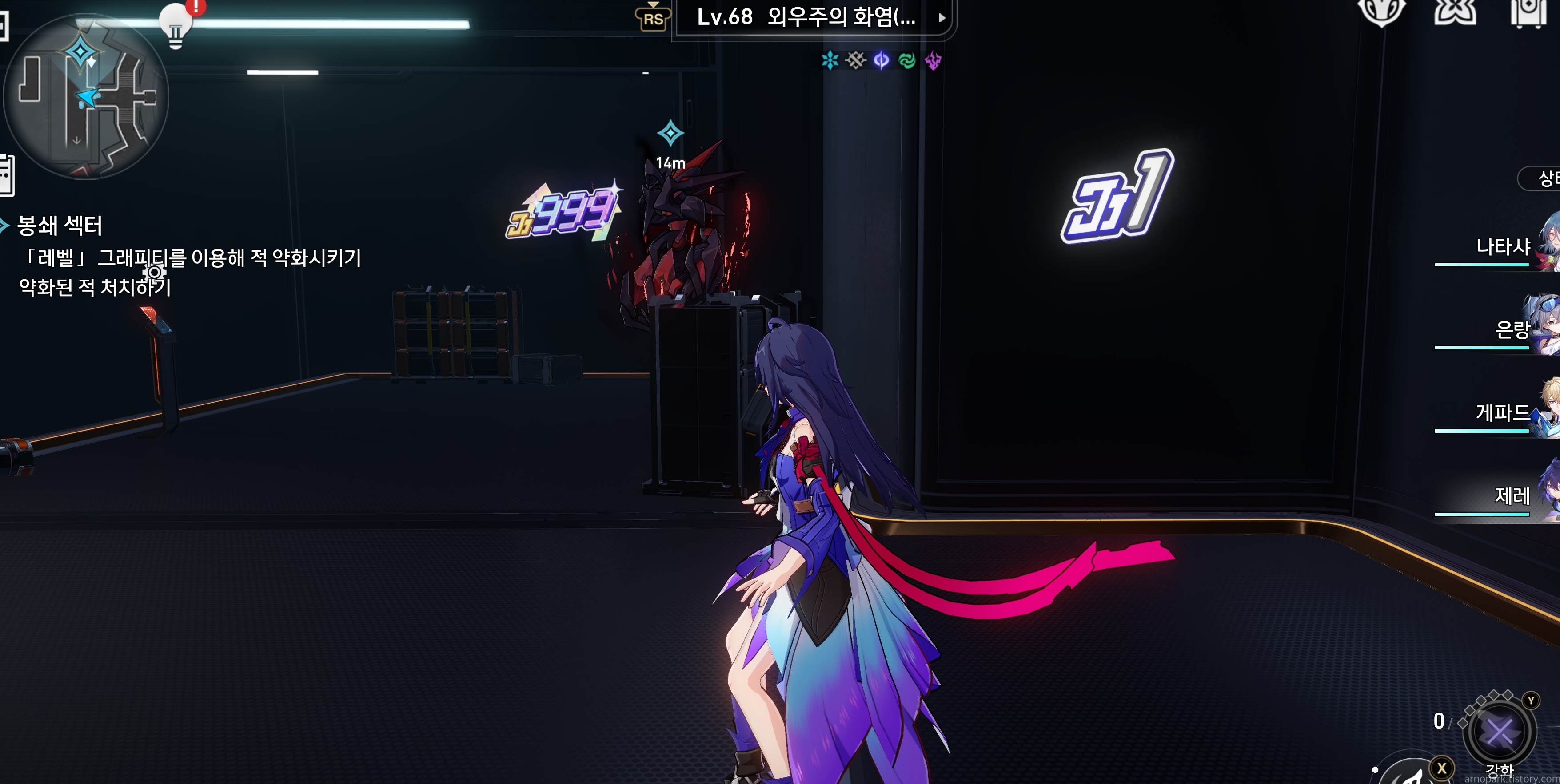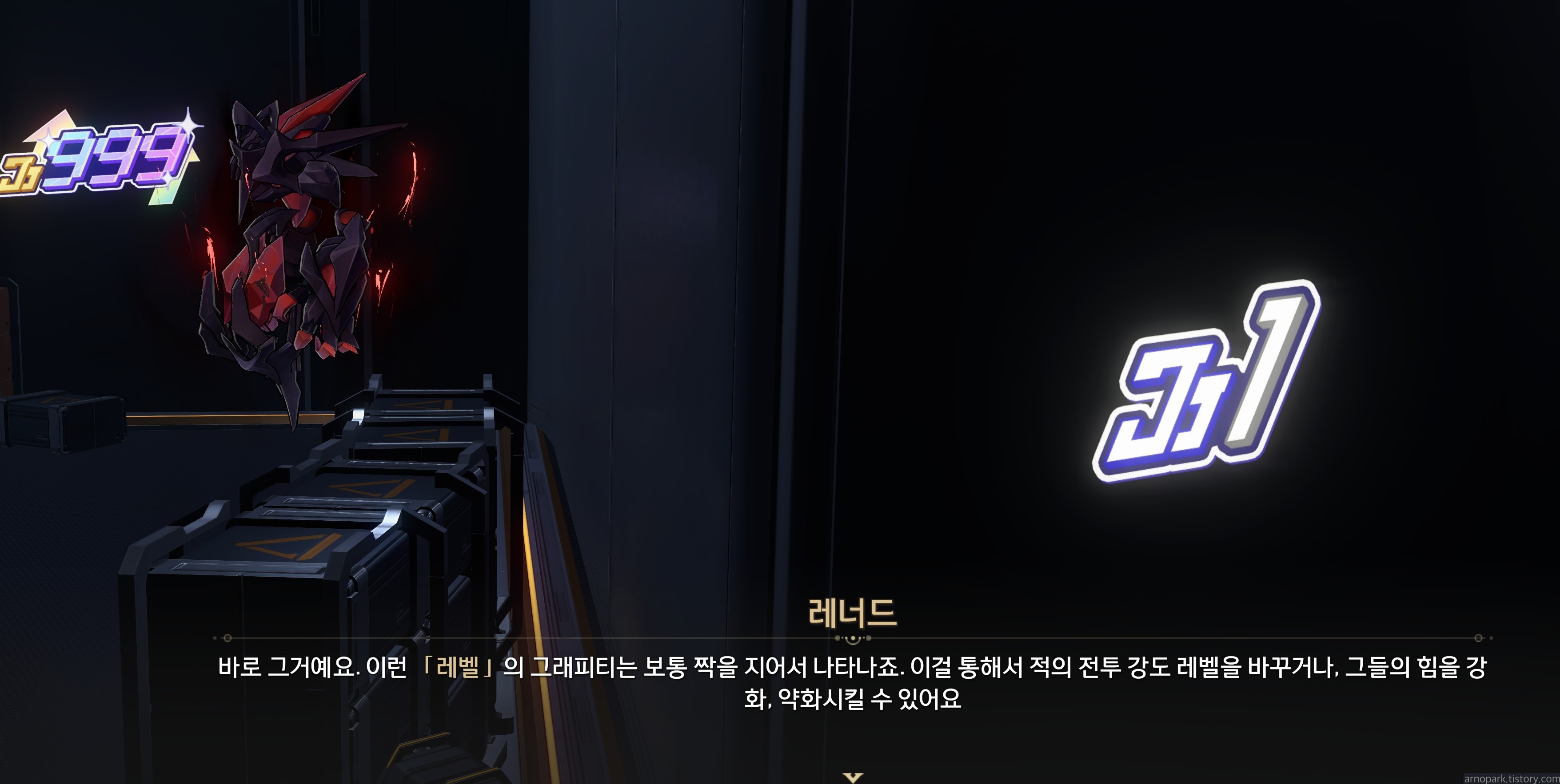 여기서부터 레벨 그래피티 기믹이 추가됩니다. 1레벨 그래피티를 스캔하면, 강력한 999레벨 적들을 너프할 수 있습니다.