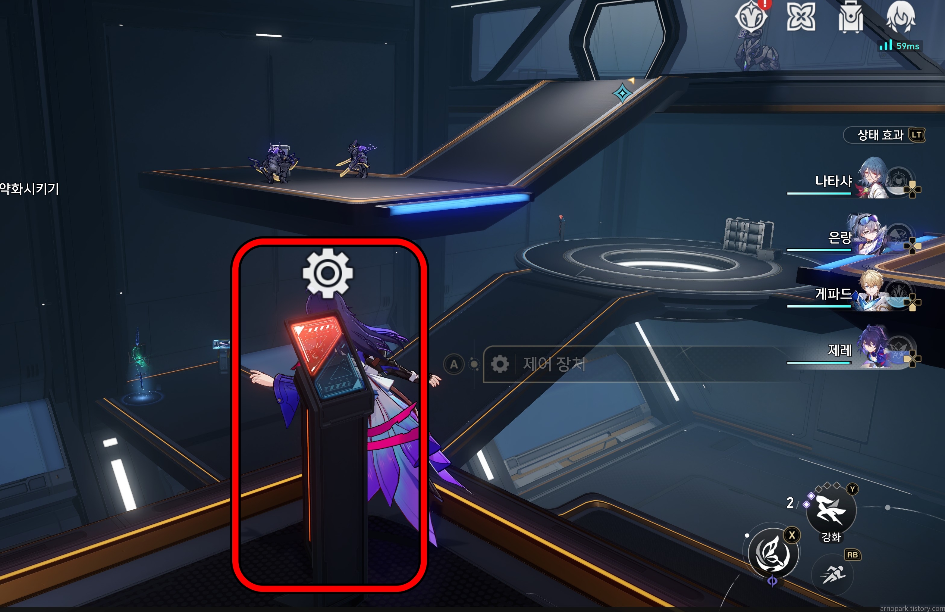 다시 돌아와서, 아까 999 -> 1레벨 몬스터를 잡은 지점에서 제어 장치를 작동시킵니다.