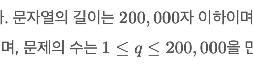 200,000자의 문자와 200,000개의 문제를 견뎌내기 힘들 것입니다. 그래서 누적합 방식을 사용합니다.