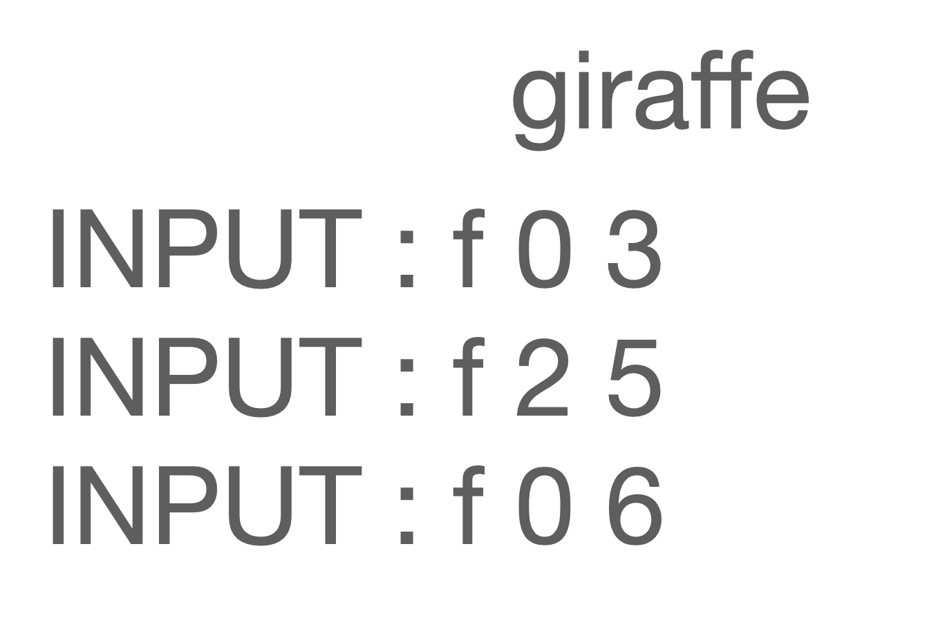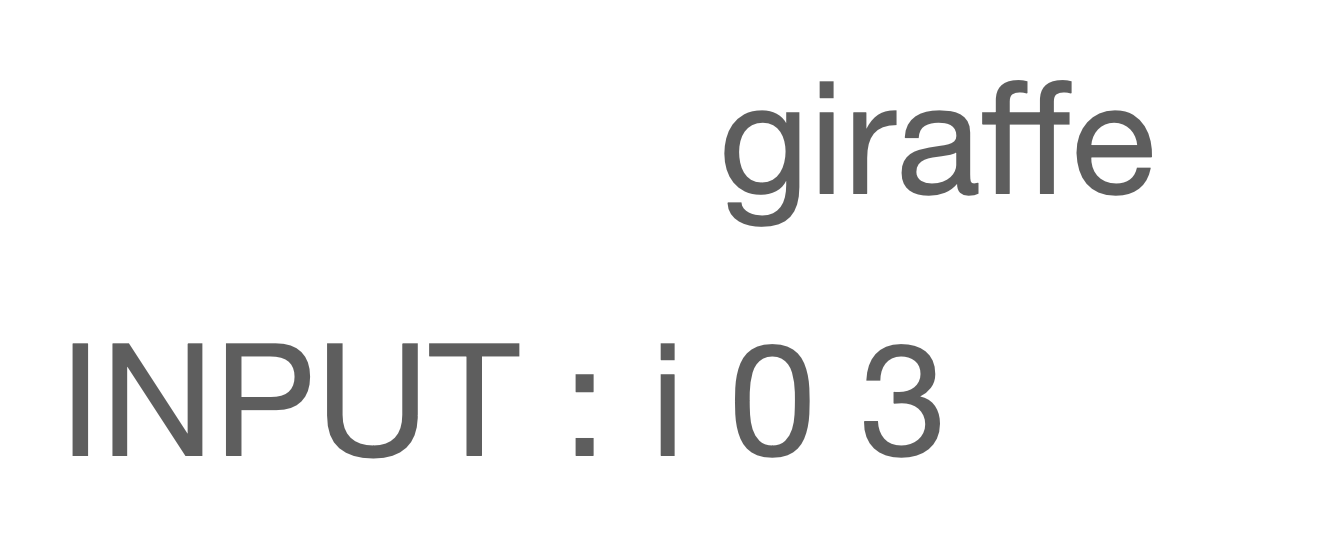 giraffe라는 글자와 [i 0 3]이라는 질문이 주어졌다고 가정합니다.