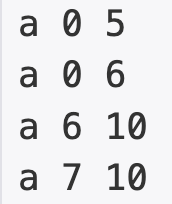 result += dp[e[0]][e[2]] - dp[e[0]][e[1] - 1] + "\n";