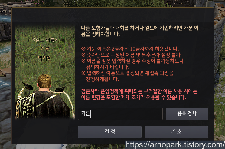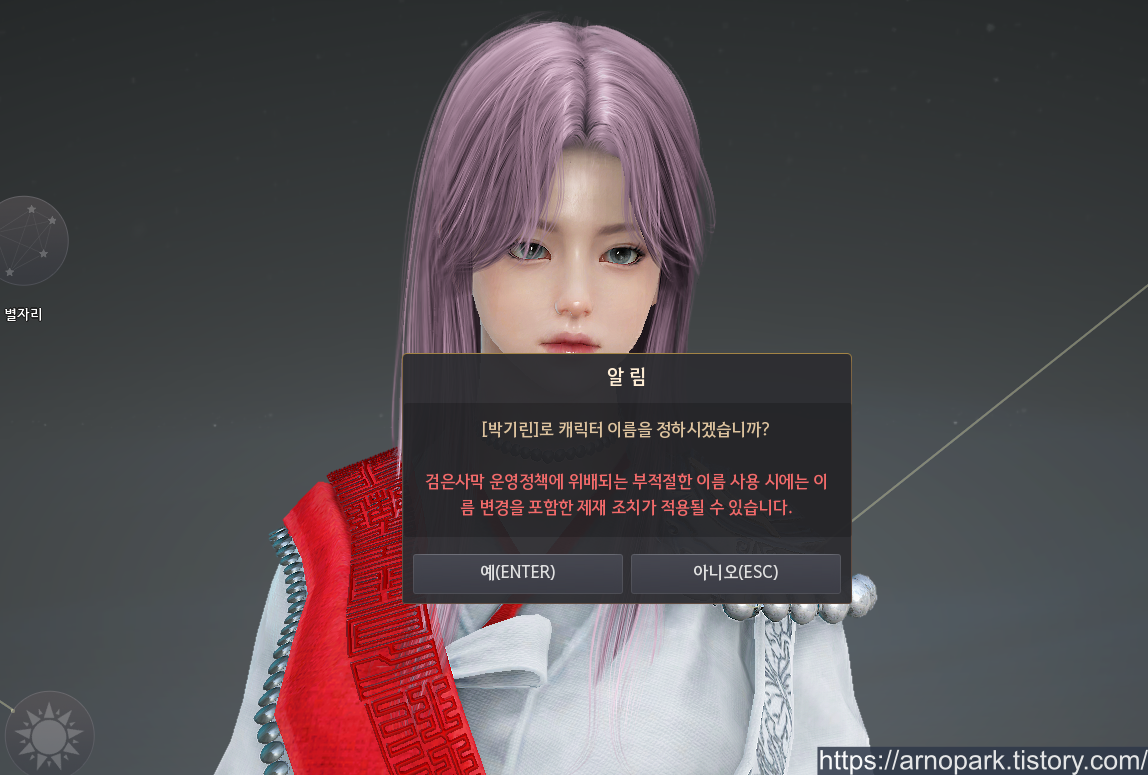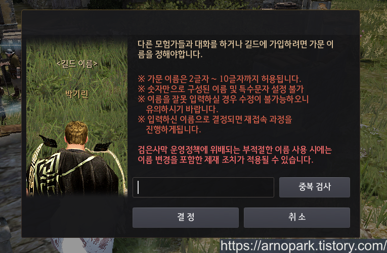 커마까지 완료했다면, 닉네임을 정하고 캐릭터를 생성합니다.