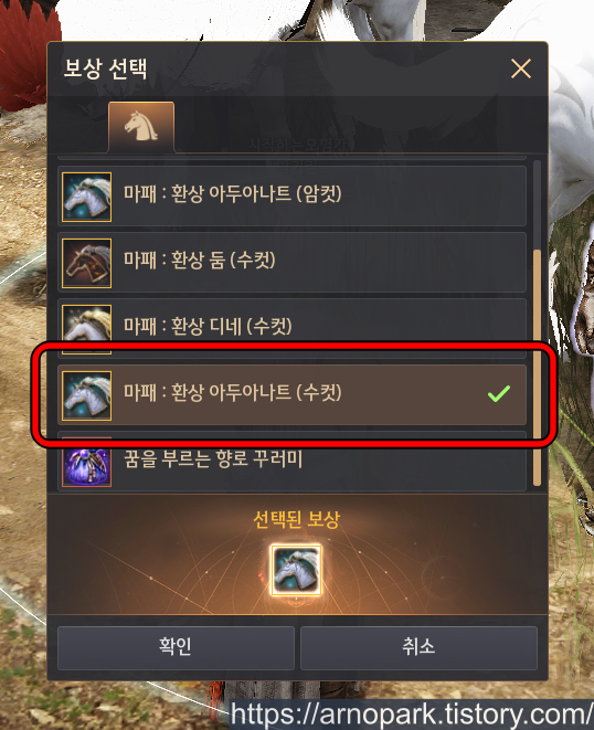 브이피코의 꿈꾸는 목마를 클릭해서, [마패: 환상 아두아나트 (수컷)]을 고릅니다.