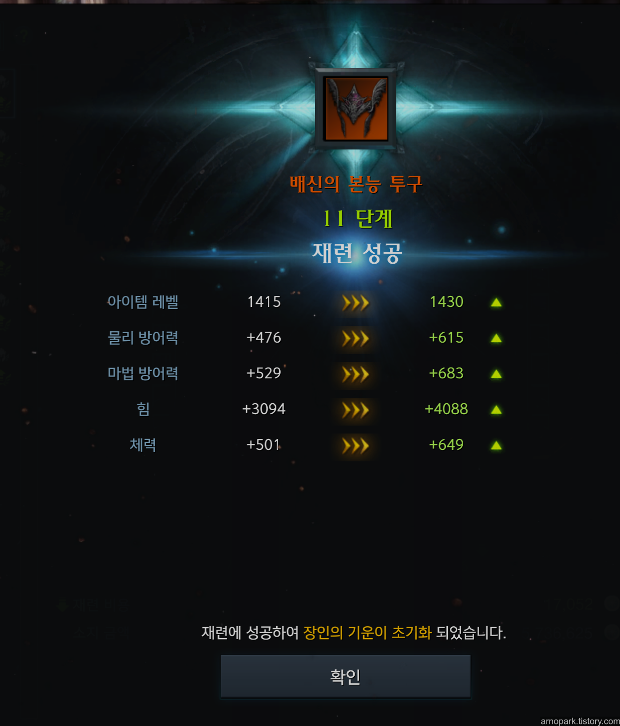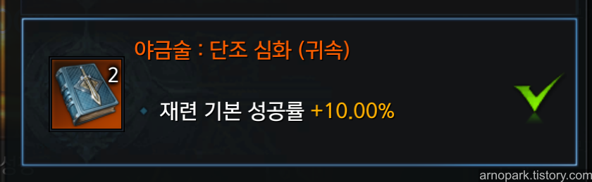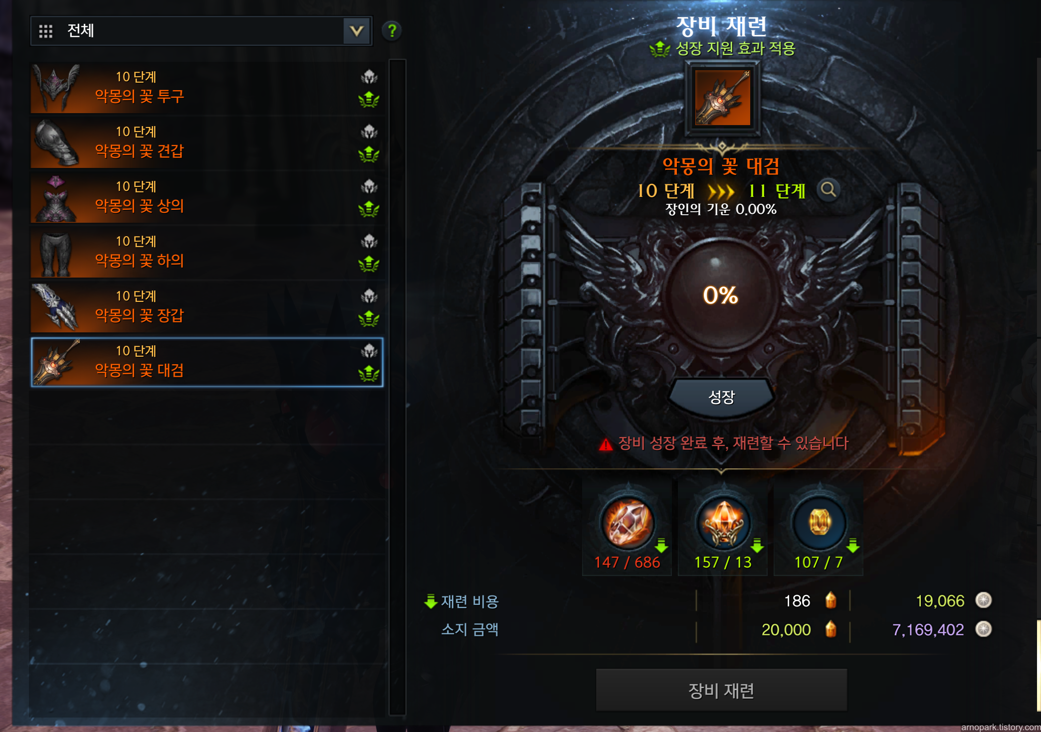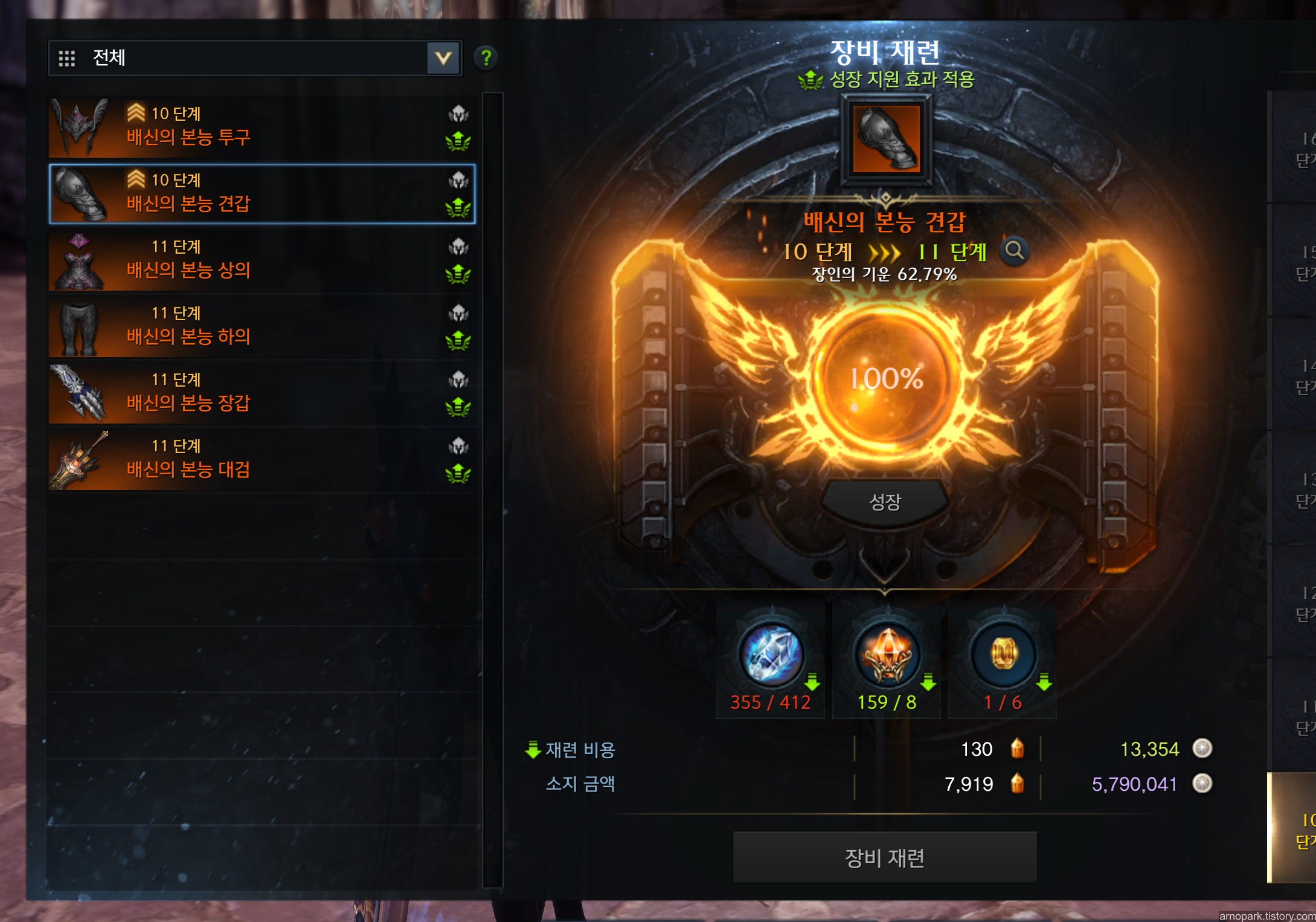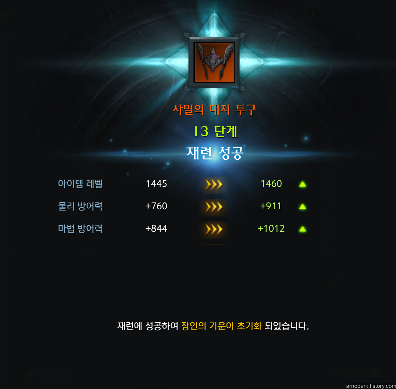 이번엔 아브 보상 쿠폰을 교환해서, 단조와 수선을 쓰고 재련합니다.