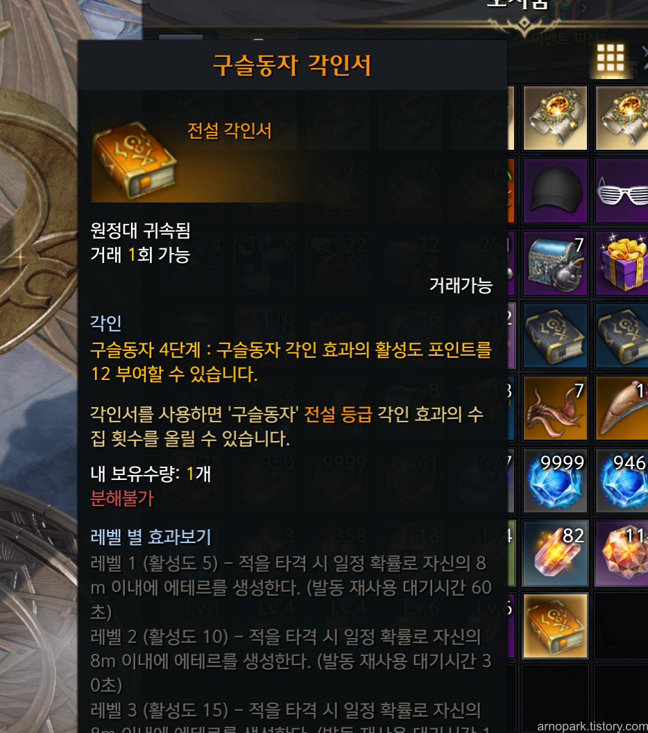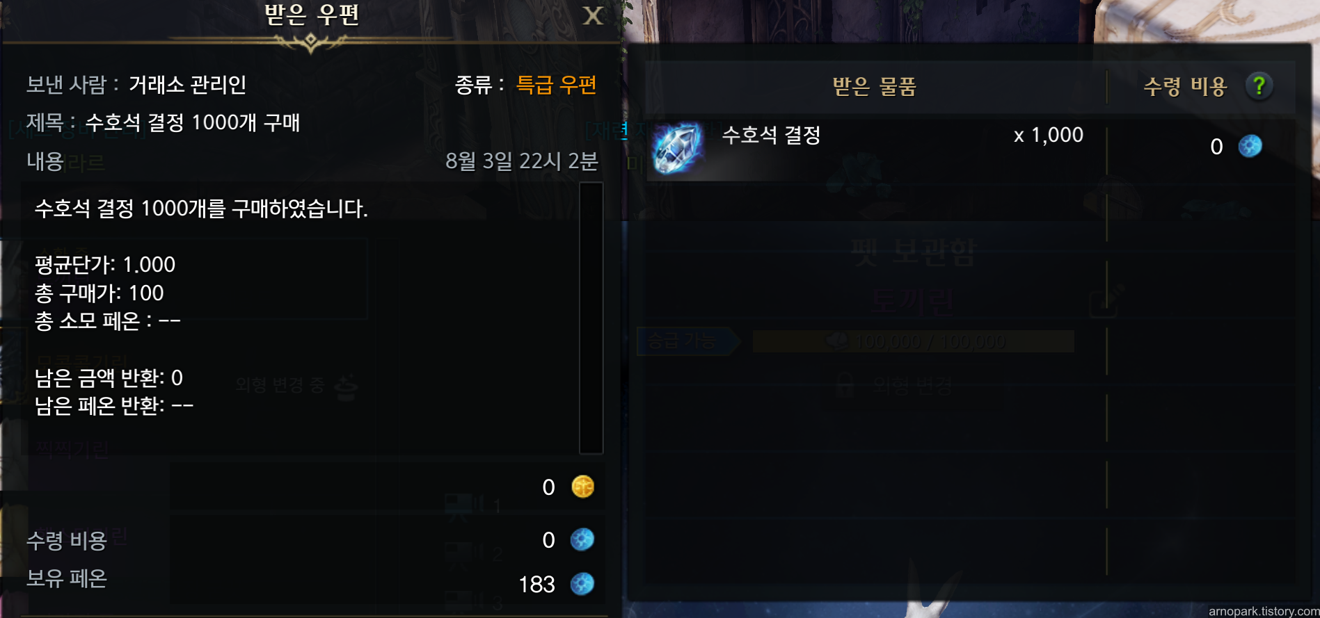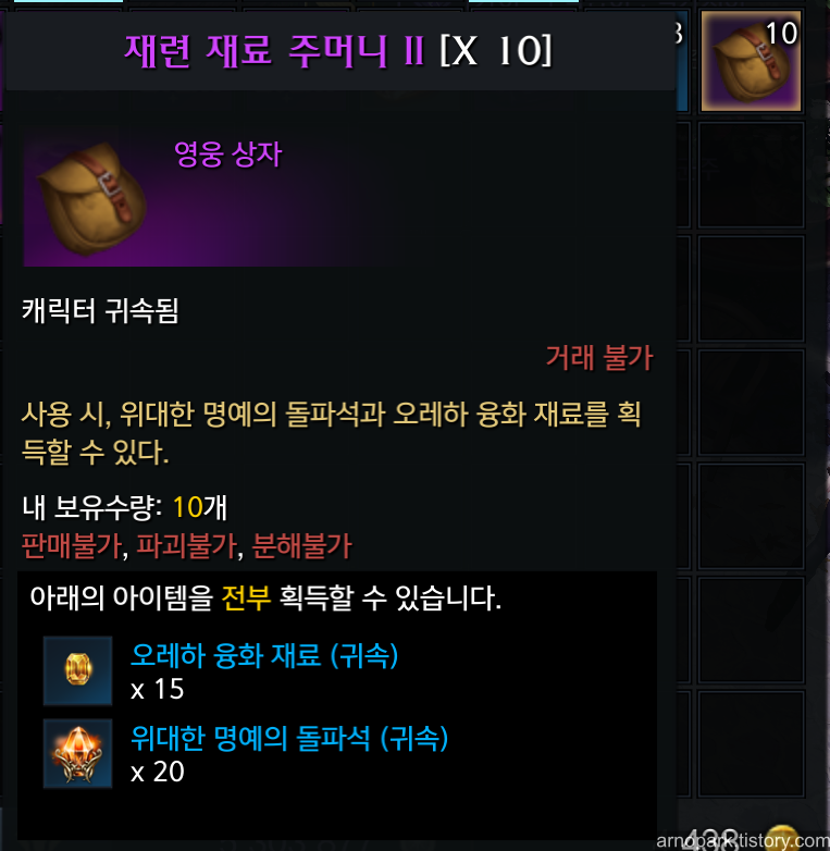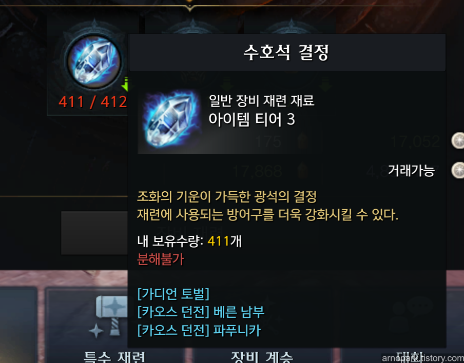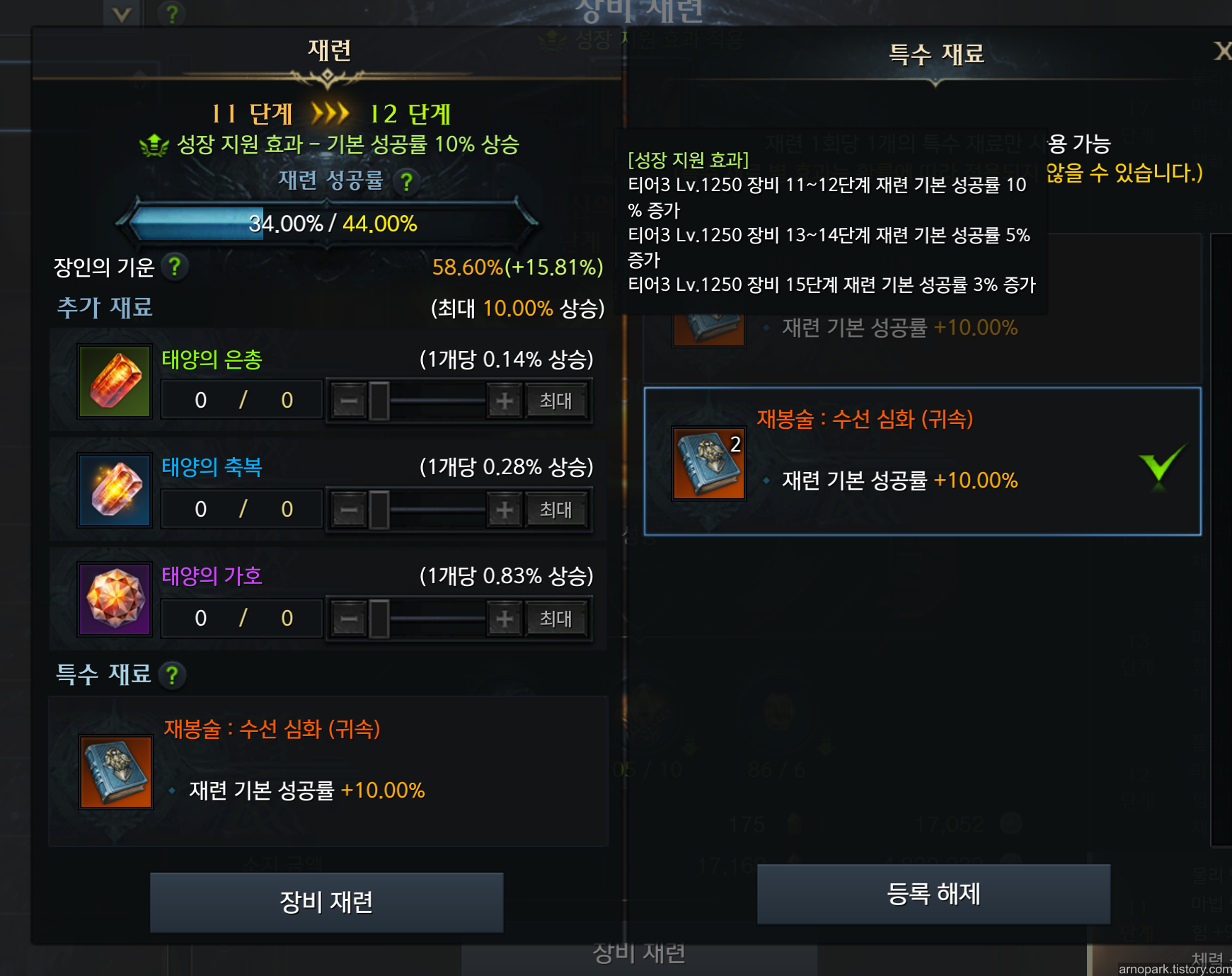 이번엔 아브 보상 쿠폰을 교환해서, 단조와 수선을 쓰고 재련합니다.