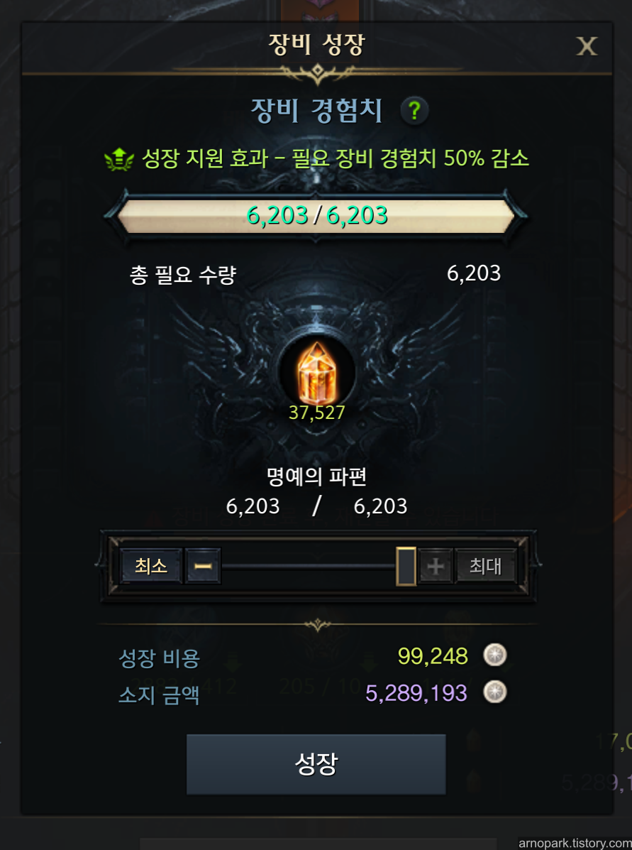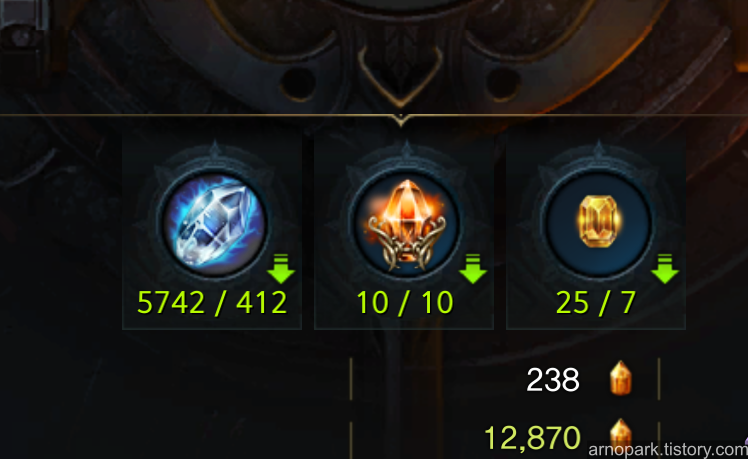 올 10강인 슬레이어. 이제 재련을 해서 템렙을 높일 차례입니다.