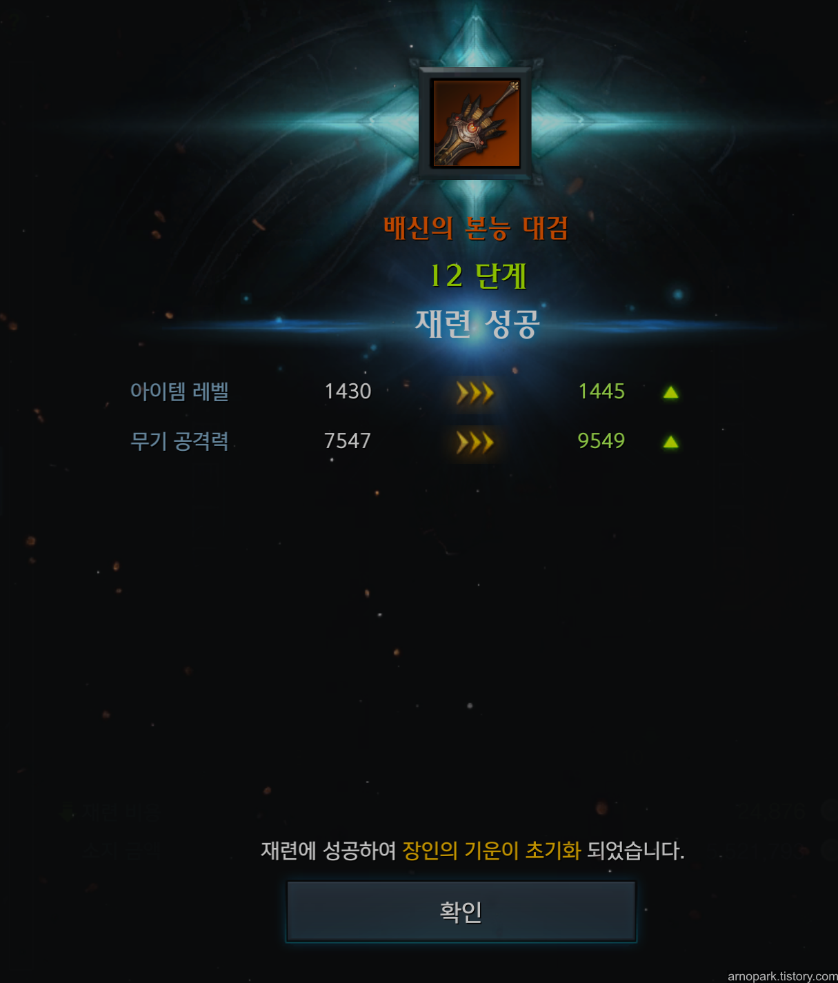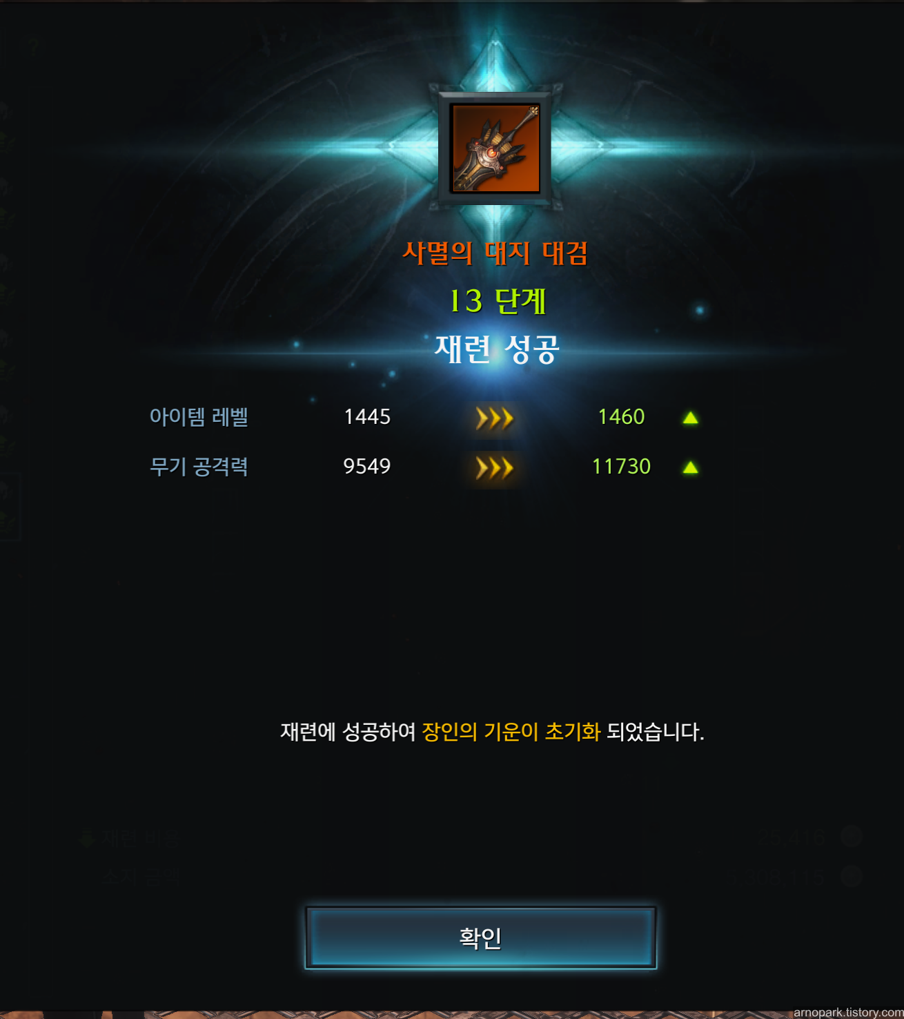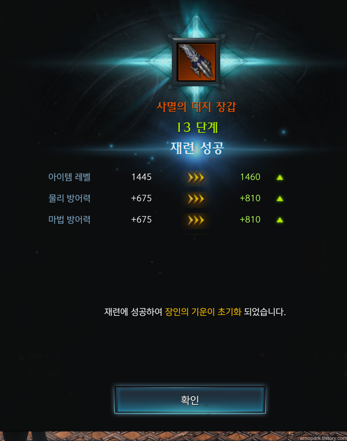 강화 성공 이펙트 출력도 전에, 안내 문구로 스포를 당해버린 1460 달성