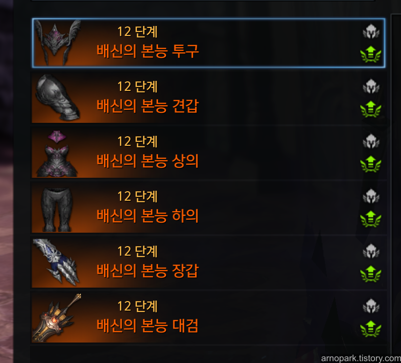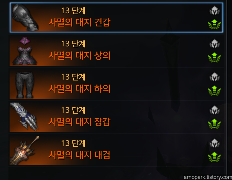 모자를 제외한 모든 장비가 13단계에 도달한 상황.