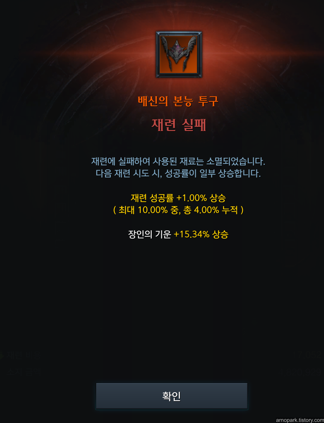 이것마저 터진다면, 더 이상 강화는 스탑인 상황.