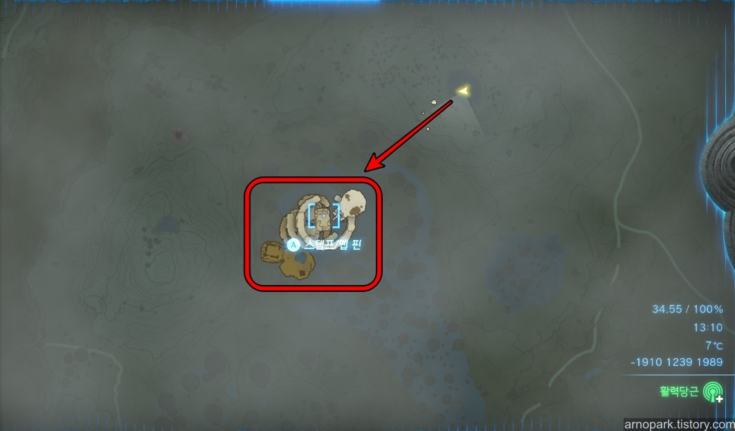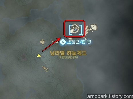 하늘맵 지도에서 사진을 따라 남쪽의 섬으로 이동합니다.