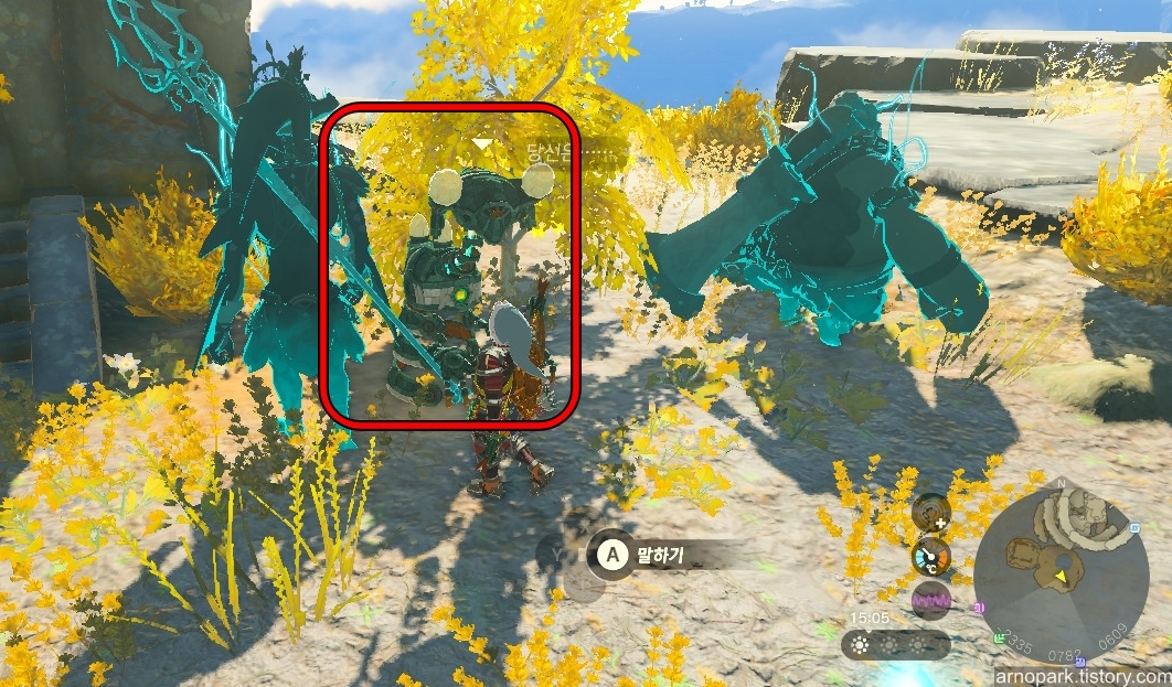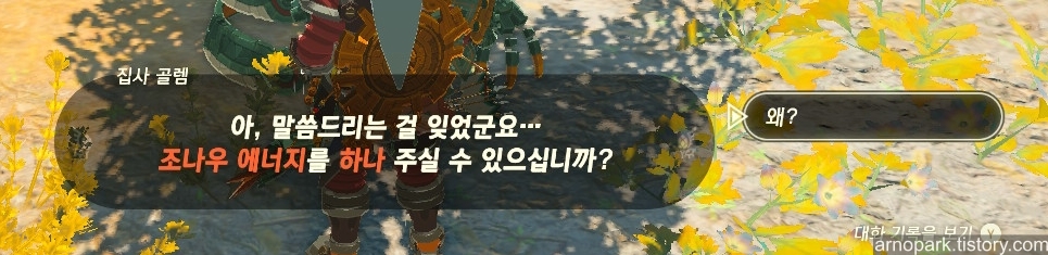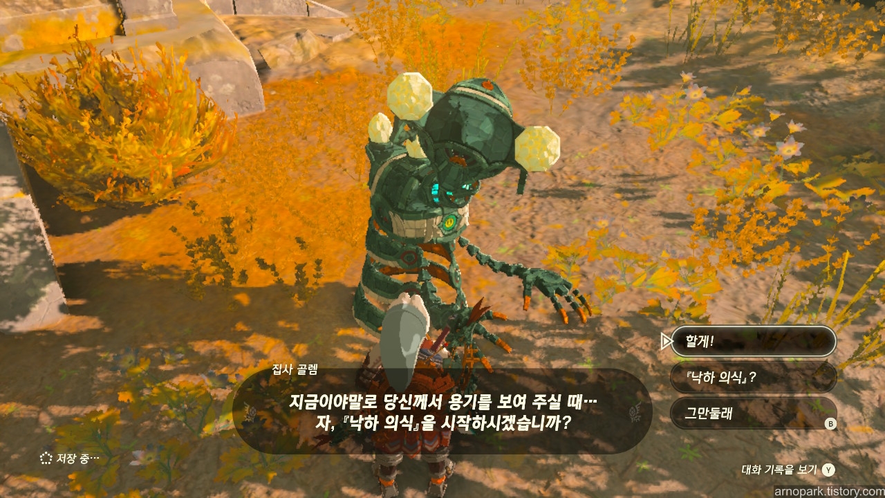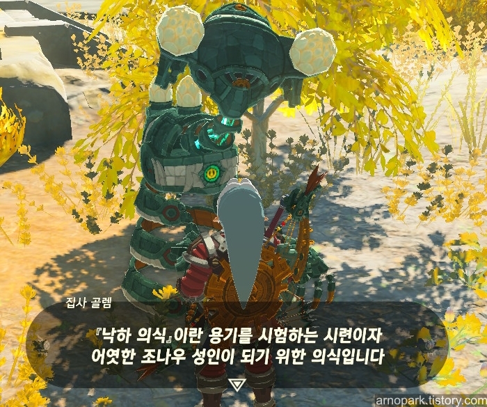 낙하 의식을 하기 위해 골렘에게 말을 걸어야 하는데,