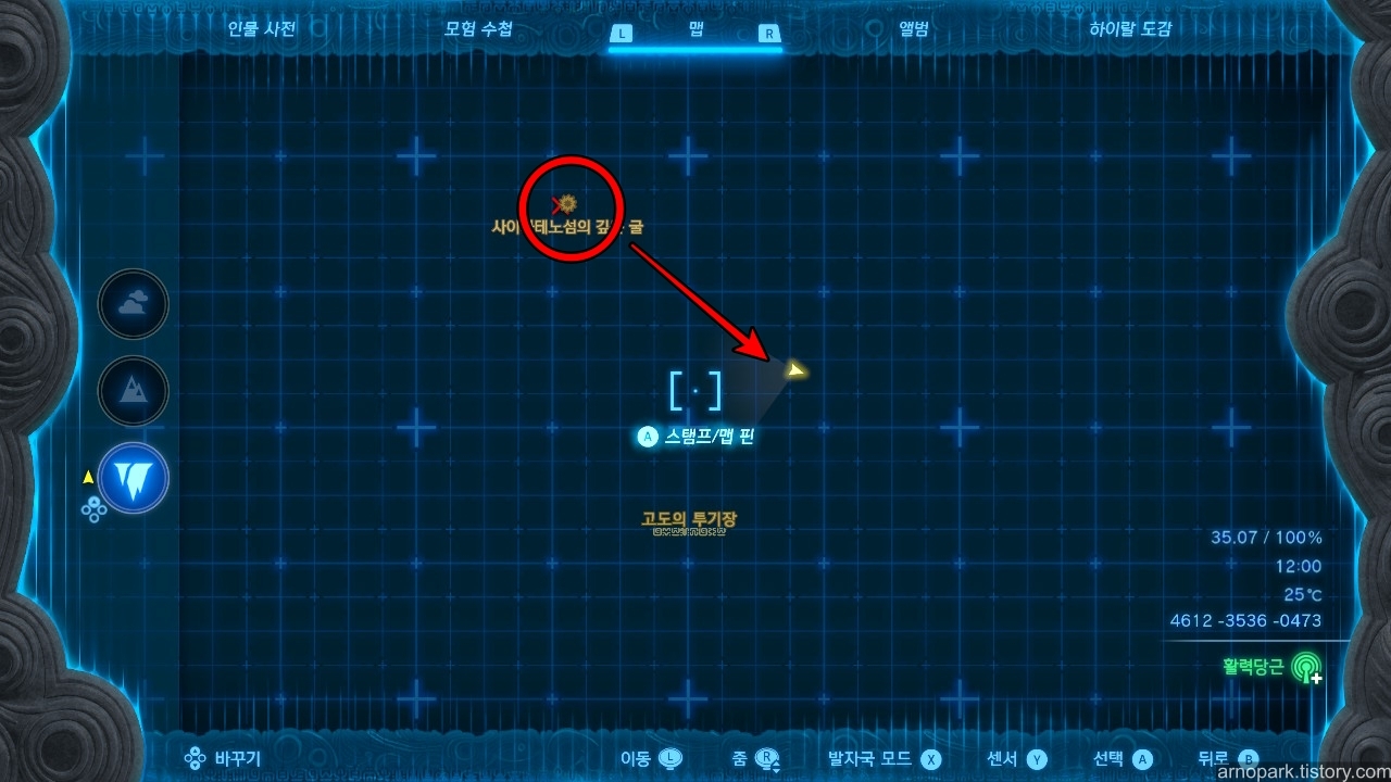 깊은 굴을 따라 내려오면 지도의 빨간 원 부분에서 착지합니다.