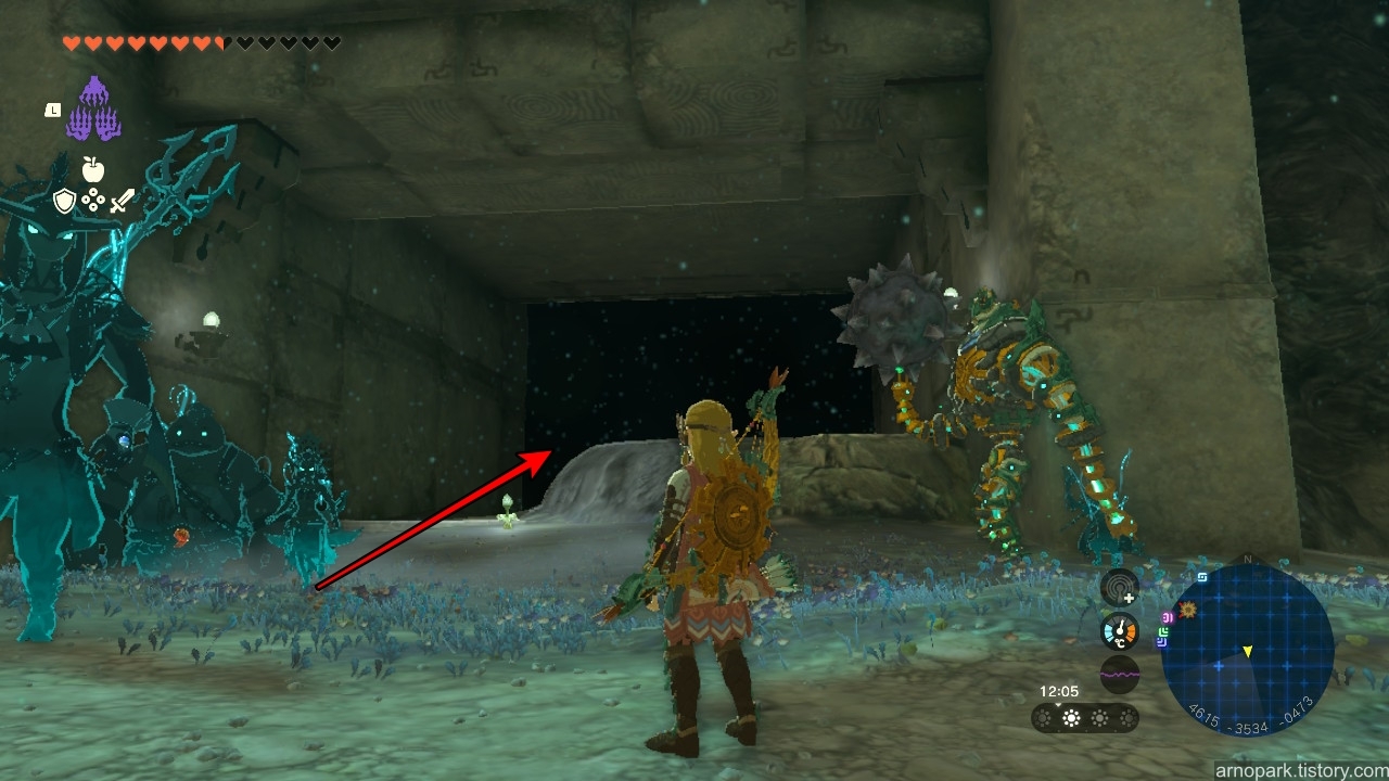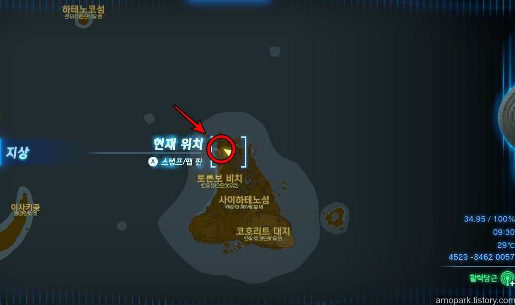 섬에 도착하면, 섬의 북쪽에 지저굴이 있는 것을 확인할 수 있습니다.