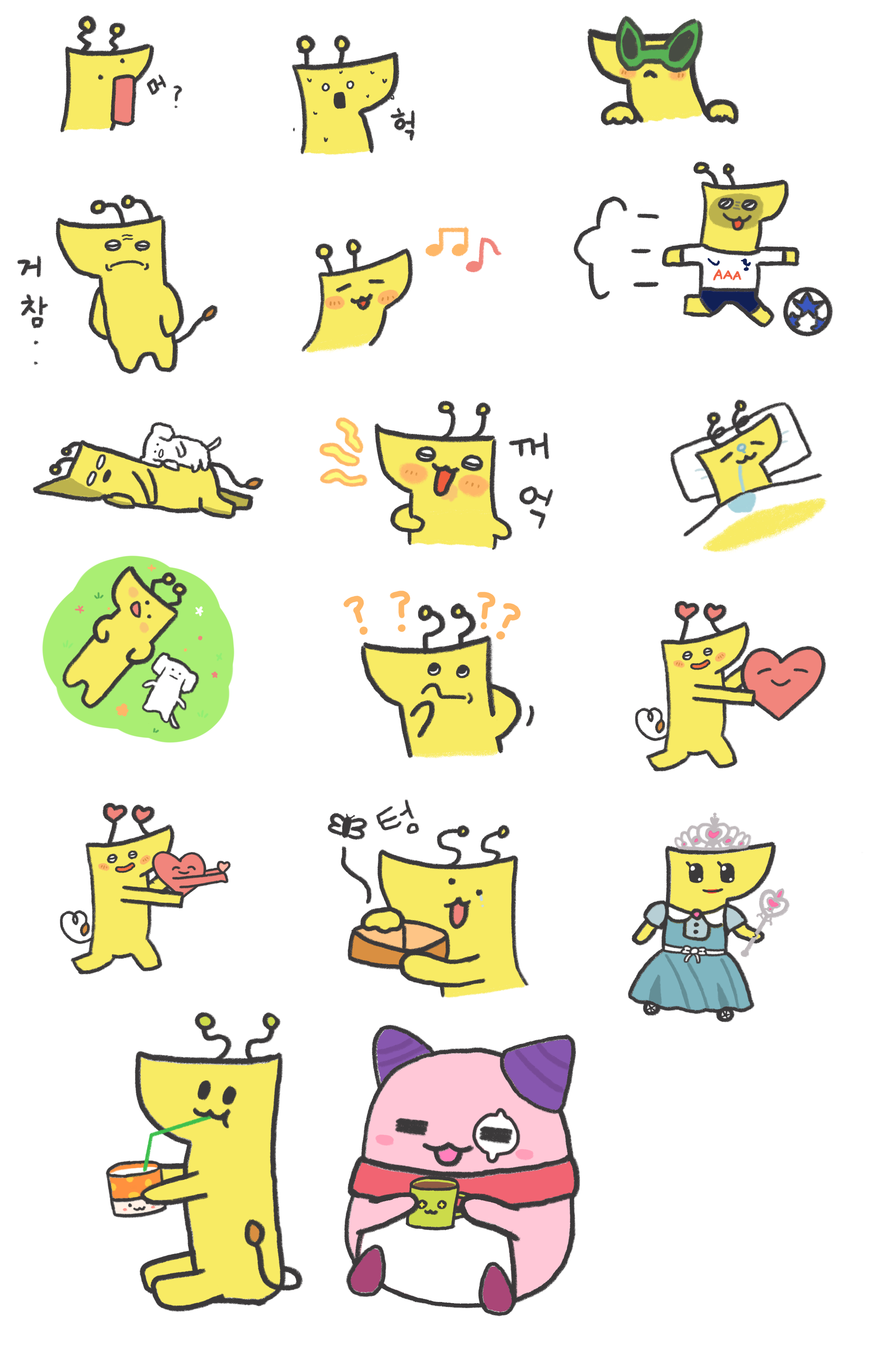 따라서 위 스티커 중 트레이싱 + 비 상업적 공유를 허락받은 것들만 공유하겠습니다.