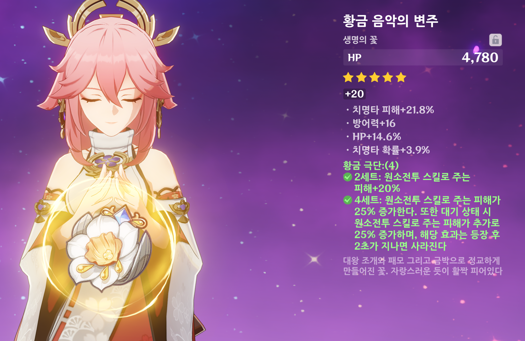 극단 4셋은 원소전투스킬(E - 살생앵) 피해량을 높입니다.