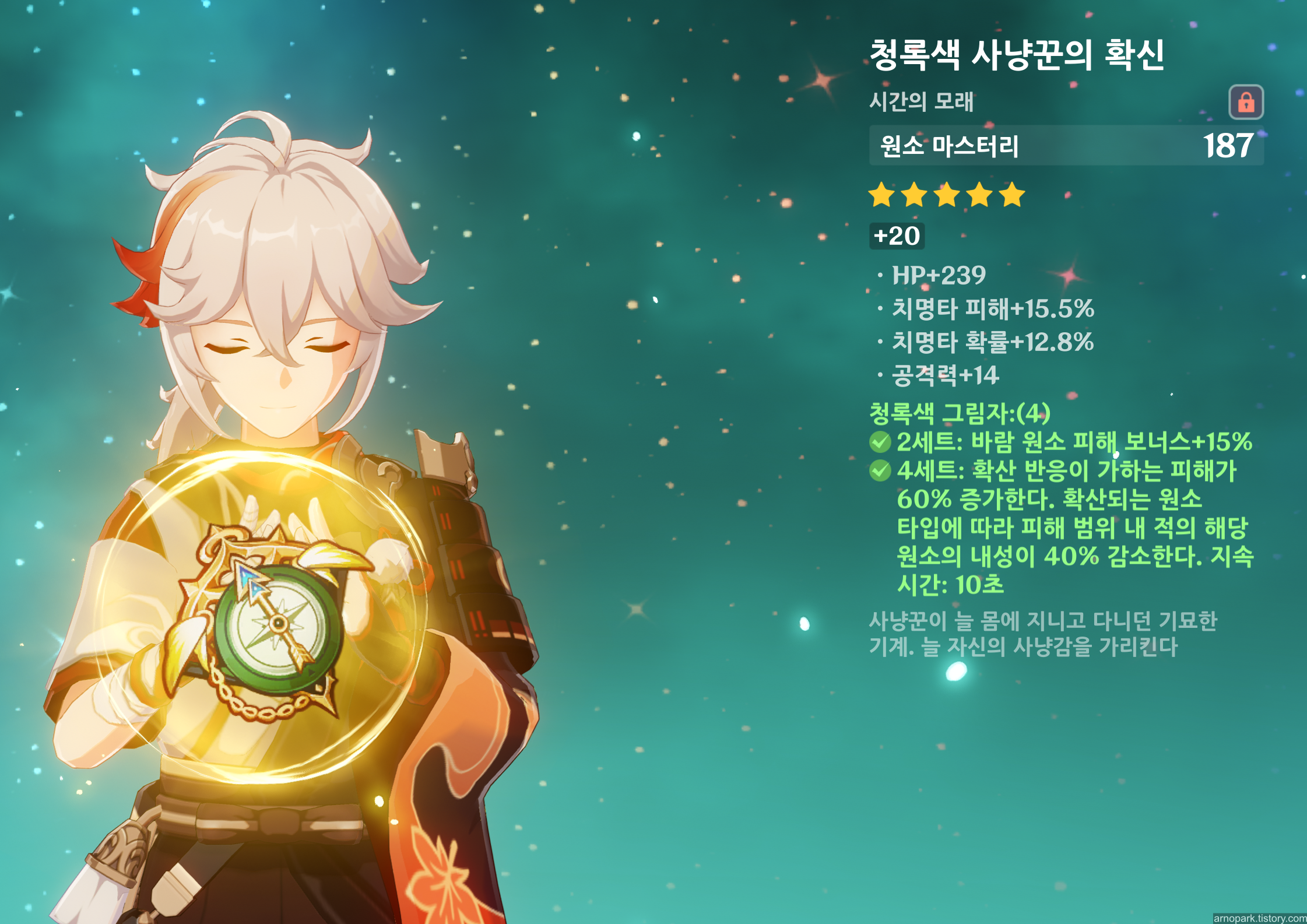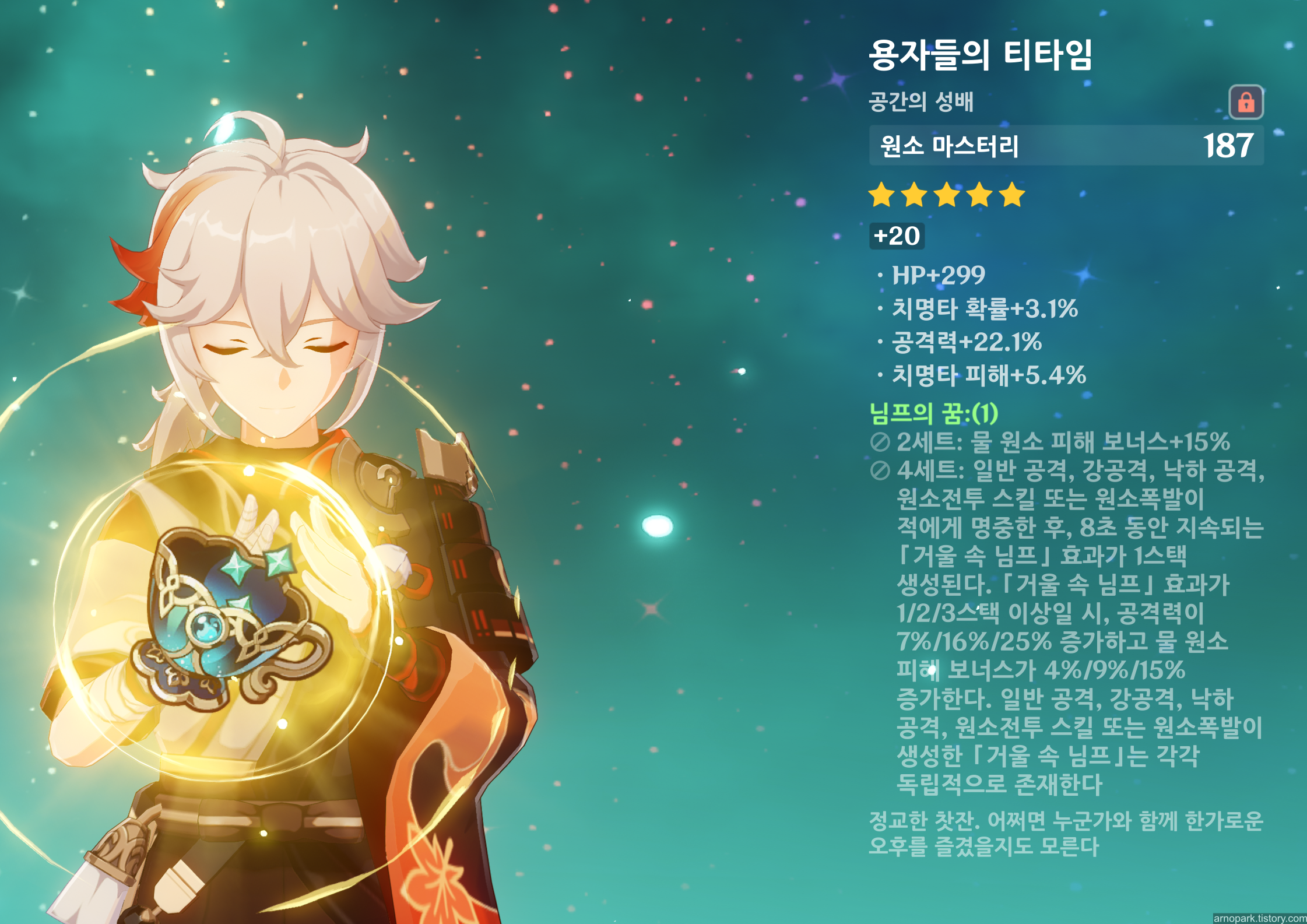 크시포스의 달빛 - 원소 마스터리를 주옵으로 제공하고, 원마에 비례한 파티원 원충 버프를 상시로 제공합니다.