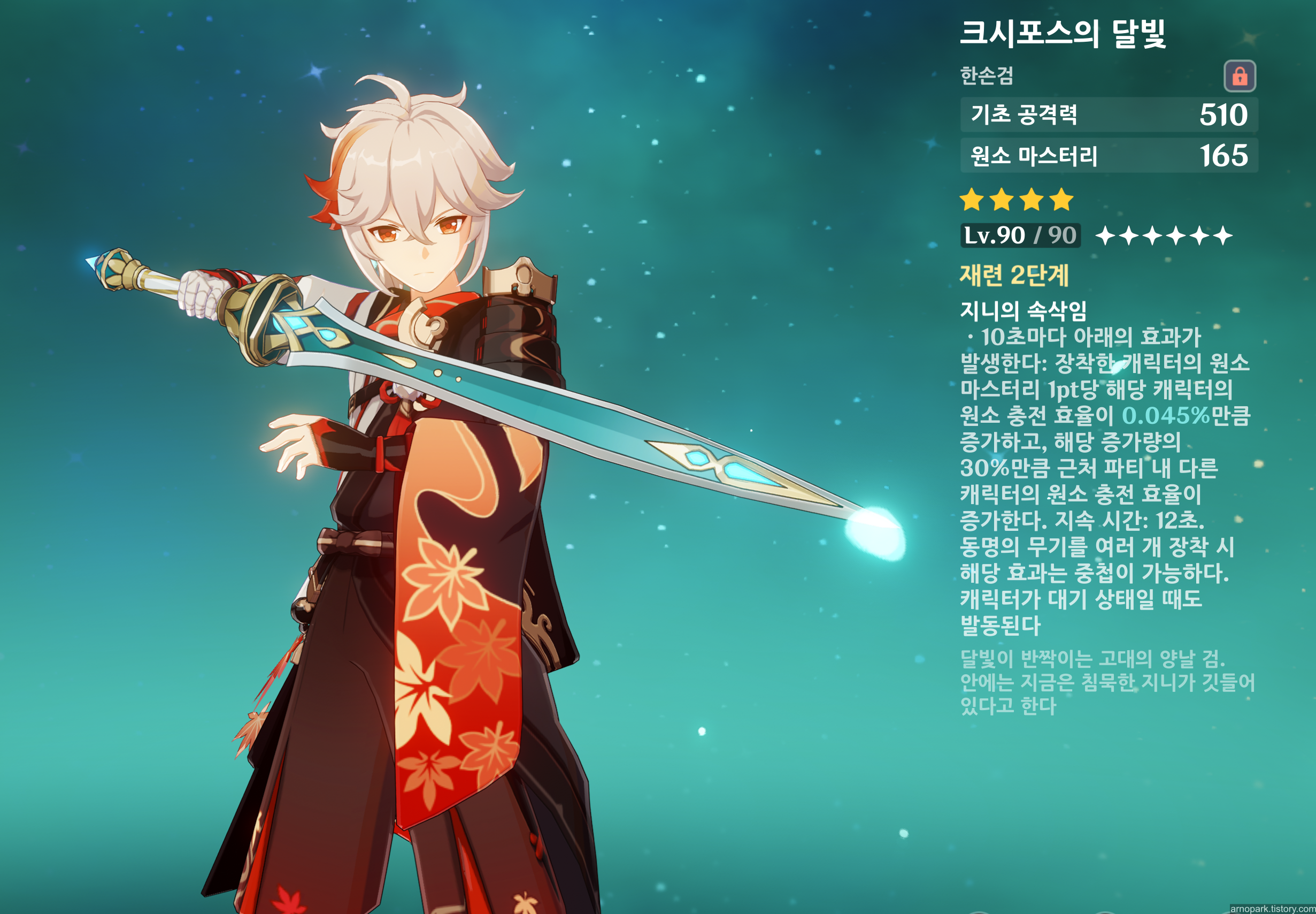 암철검 - 원소 마스터리를 주옵으로 제공하고, 4성 무기를 얻기 힘든 상황일 때 쓰면 좋습니다.