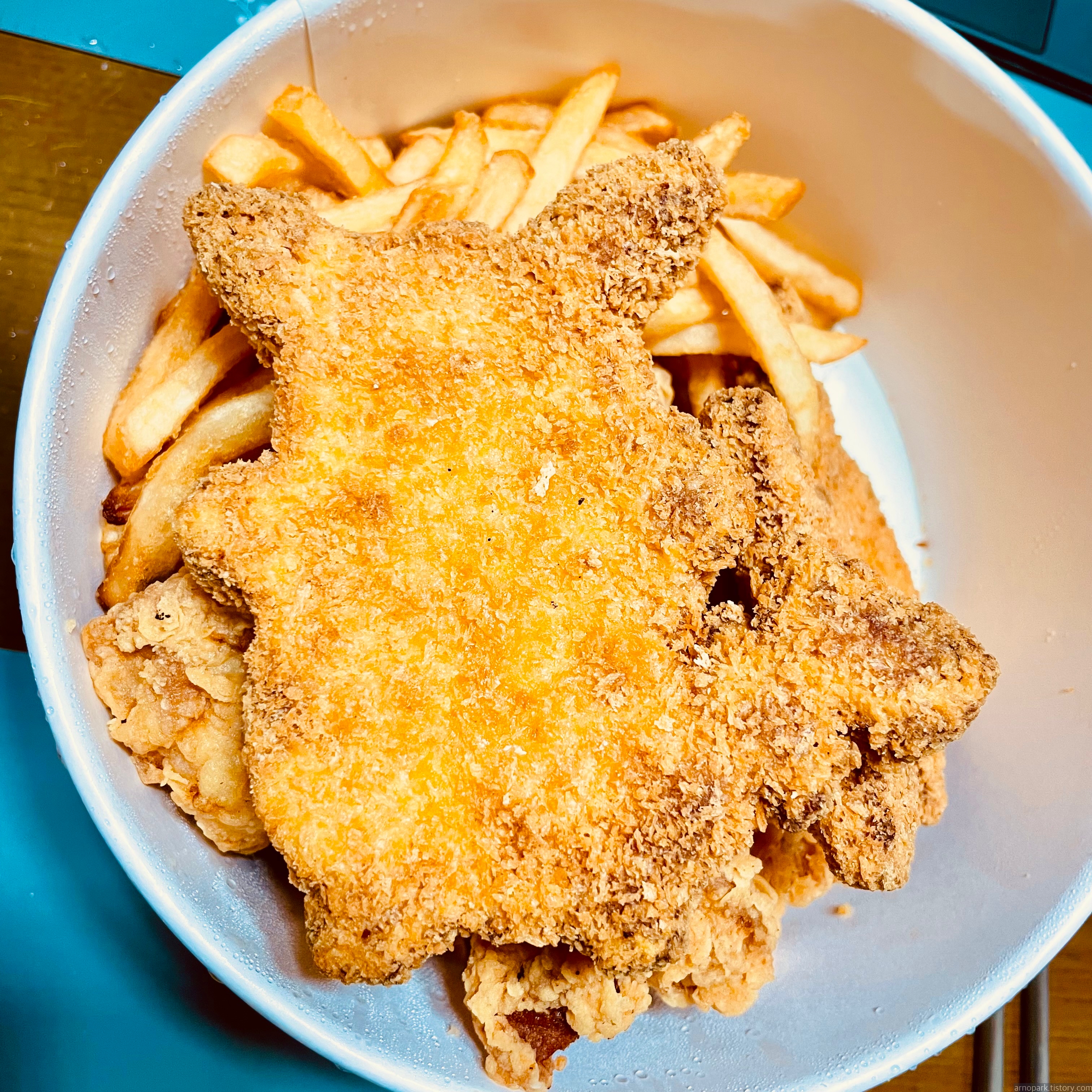 포슬포슬 후라이드 순살 치킨, 감자튀김, 피까츄 돈까스입니다.