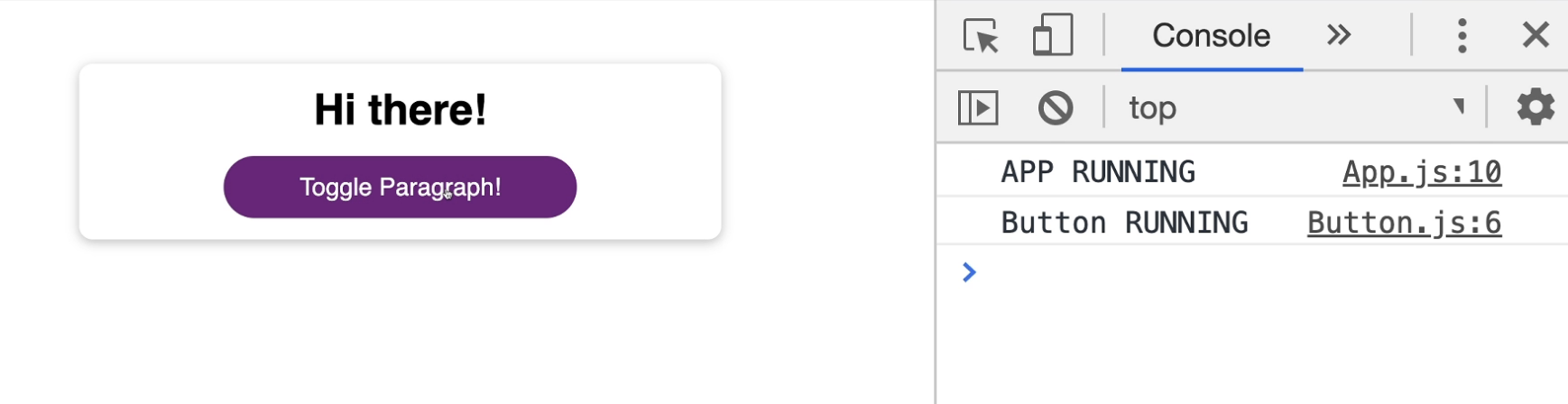 이제 <Toggle Paragraph!> 버튼을 눌러도, 콘솔이 찍히지 않습니다.