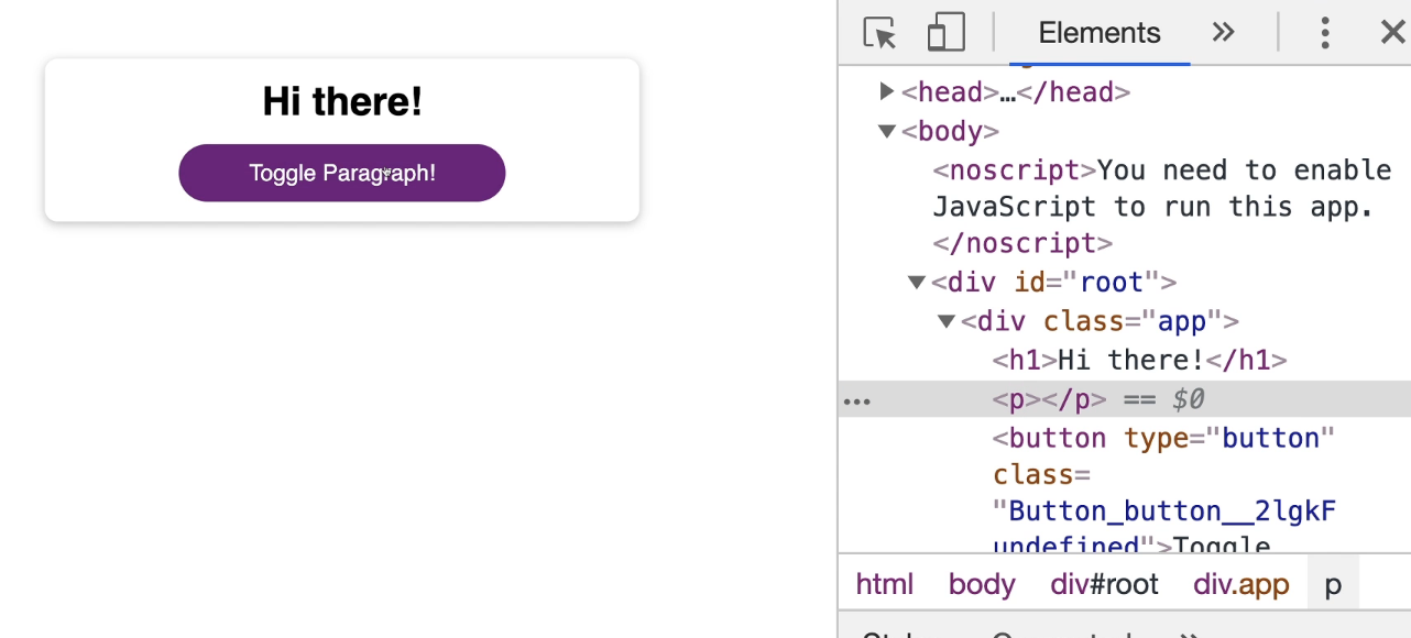 이제, <Toggle Paragraph!> 버튼을 출력해주는 Button.js에 주목해야 합니다.