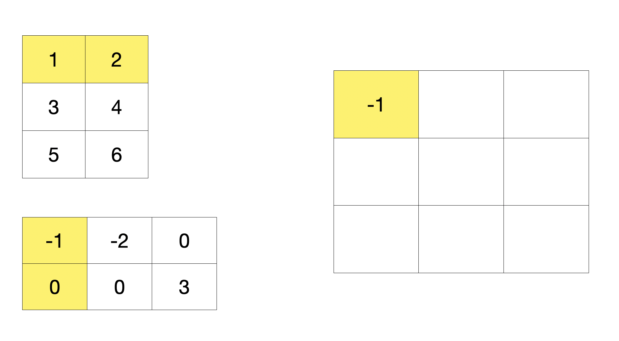 계산 식 : 1 * (-1) + 2 * 0 = -1