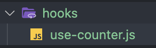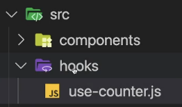 src 폴더 내부에 hooks라는 폴더를 만듭니다. 이 안에 커스텀 훅들을 담은 JS 파일들을 저장합니다.