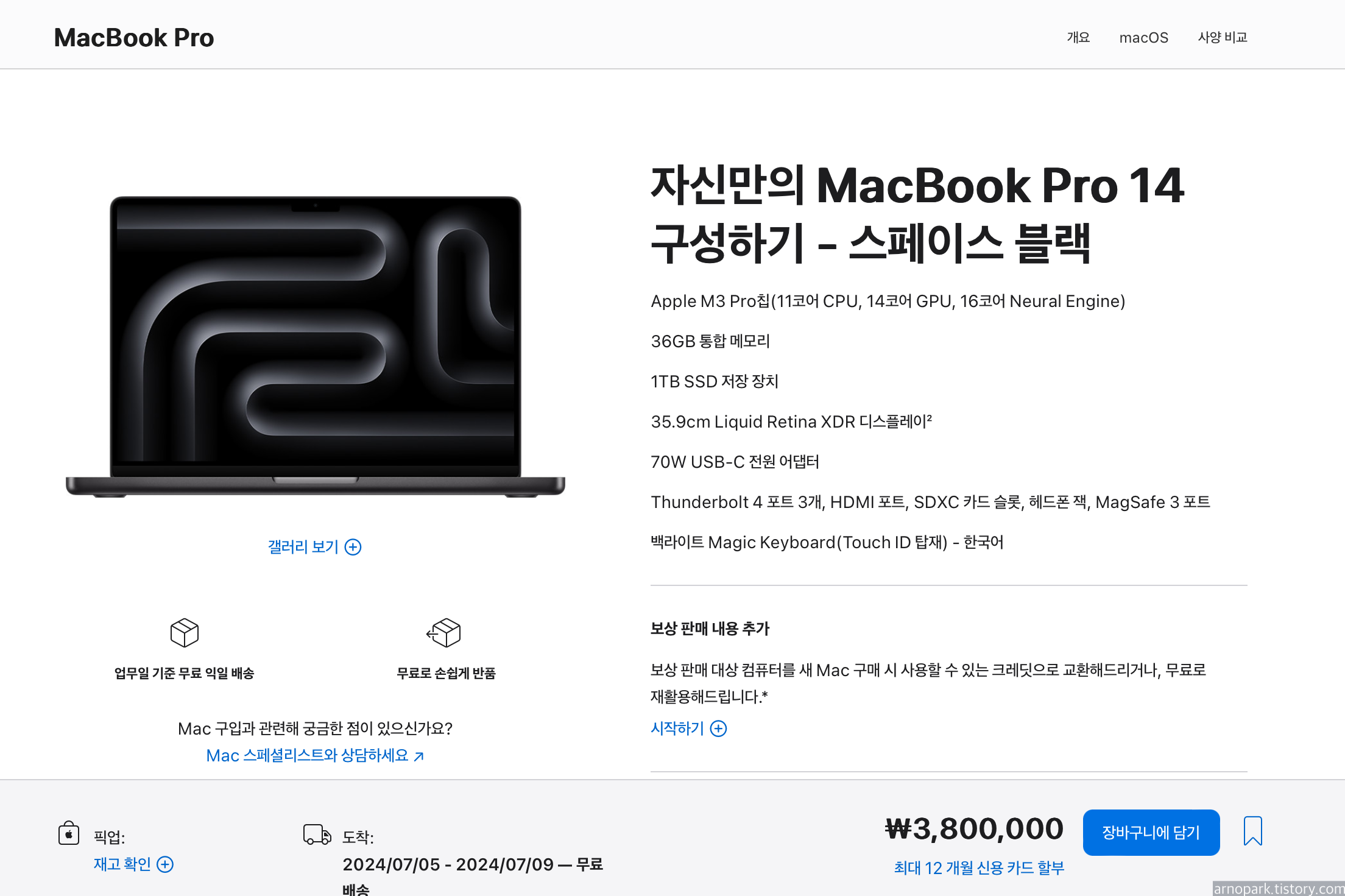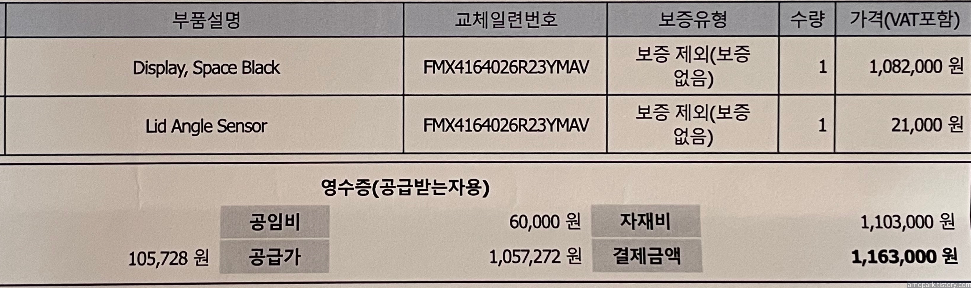 가장 최신 제품에다가, CTO로 36기가램에 1TB SSD까지 추가한 상태라서 수리를 안 하는 게 더 아쉬운 상황..