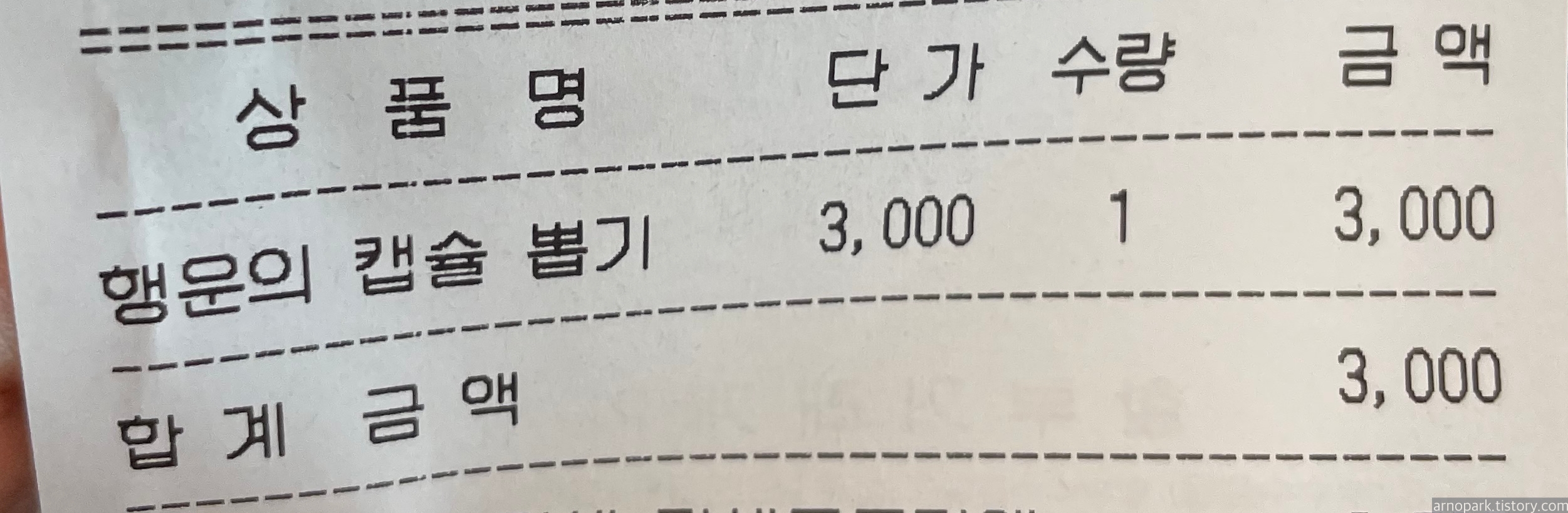 행운 캡슐 가격이 3천원이길래 해봤습니다.