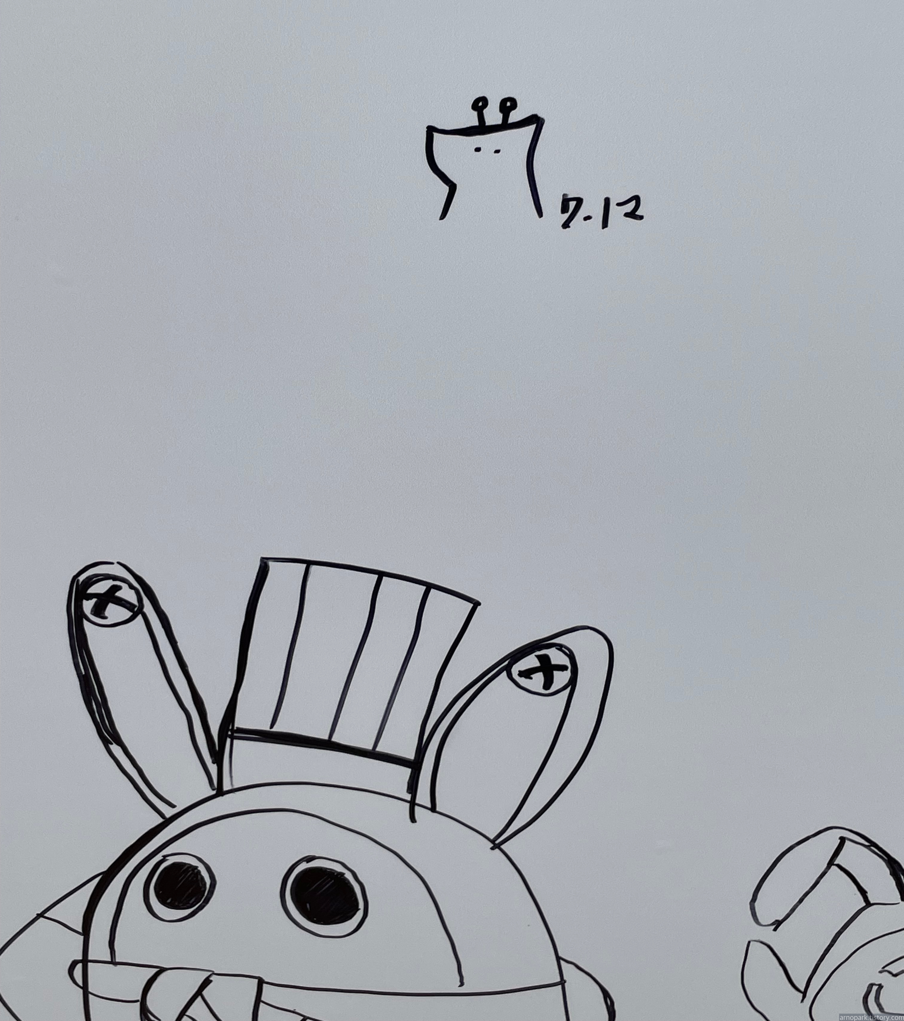 아까 봤던 방명록에 다시 가서, 기린의 흔적을 남겼습니다.