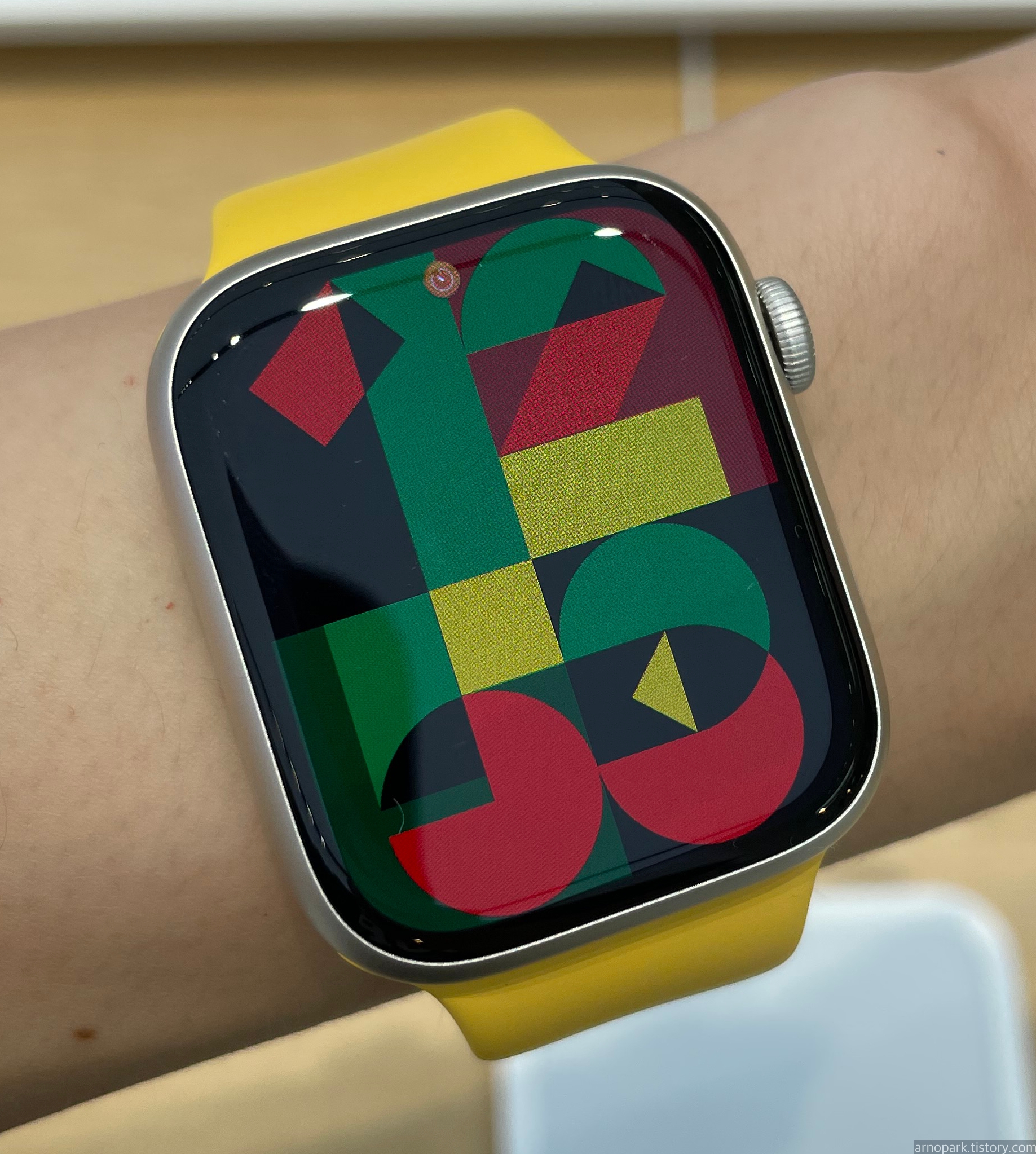 애플워치도 실착해봤습니다. 애케플 가격이 애플워치 가격이라니... 애플워치 사고 싶었지만 애케플과 맥북 수리비 가격을 생각하며 눈물을 머금고 포기했습니다.