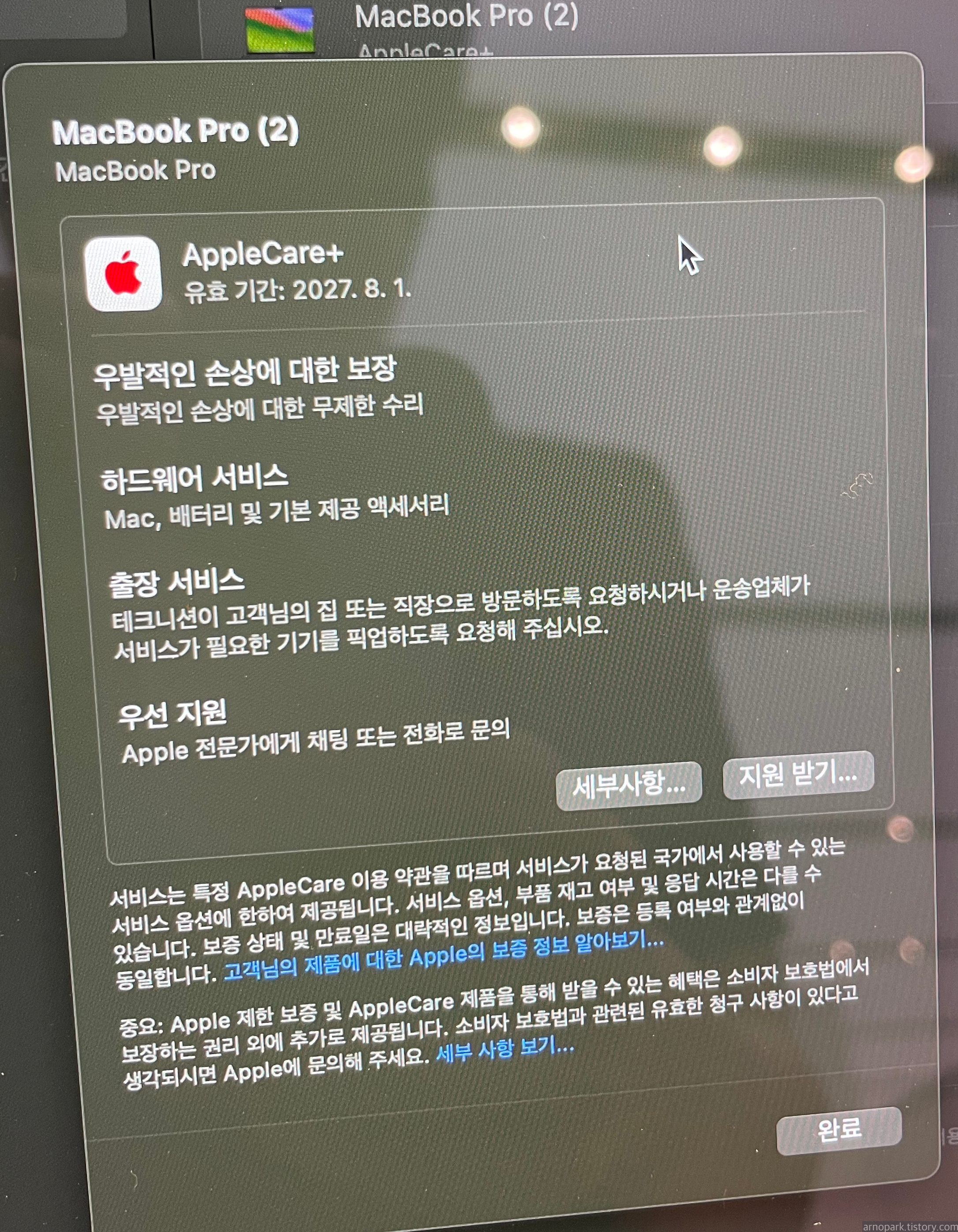 애케플 등록 일자로부터 3년의 보험이 갱신됐습니다. (맥북은 애케플 기간이 3년입니다.)