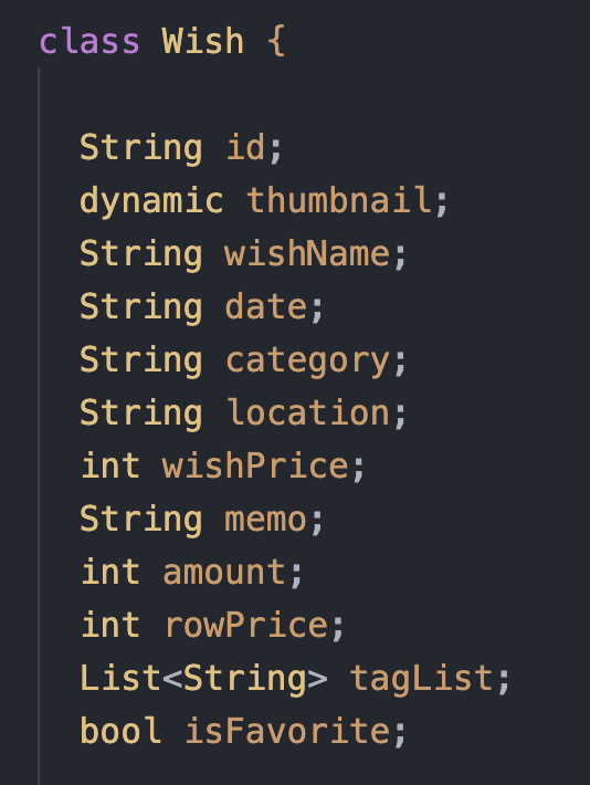 Wish 정보를 저장할 수 있는 Class 입니다.