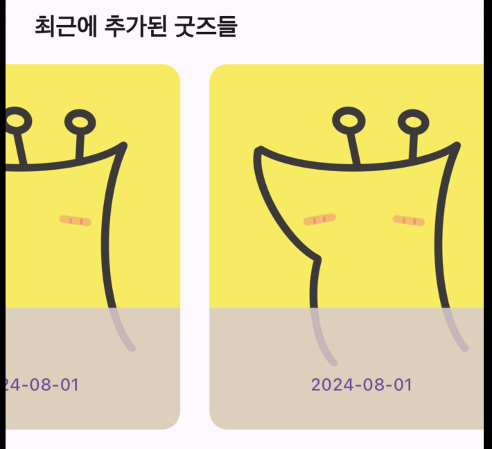 중단의 '최근에 추가된 굿즈' 영역입니다.