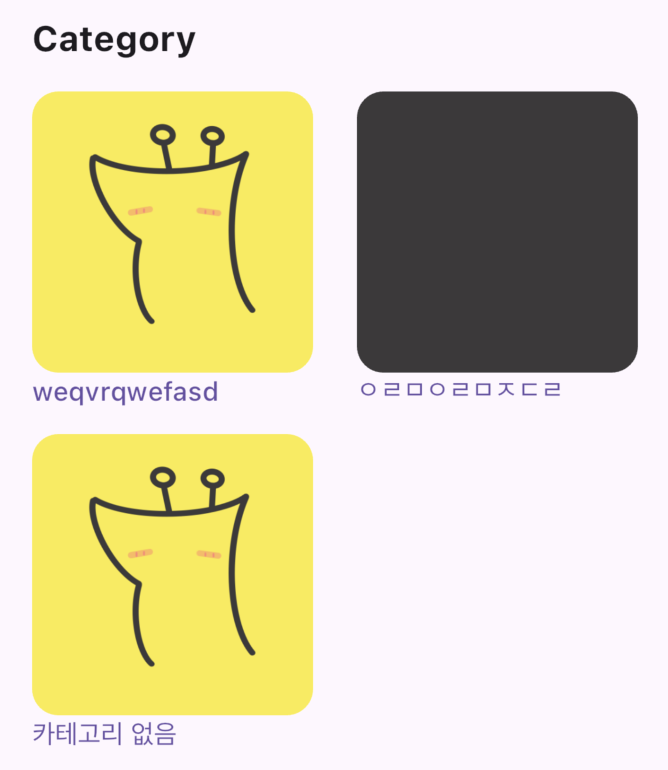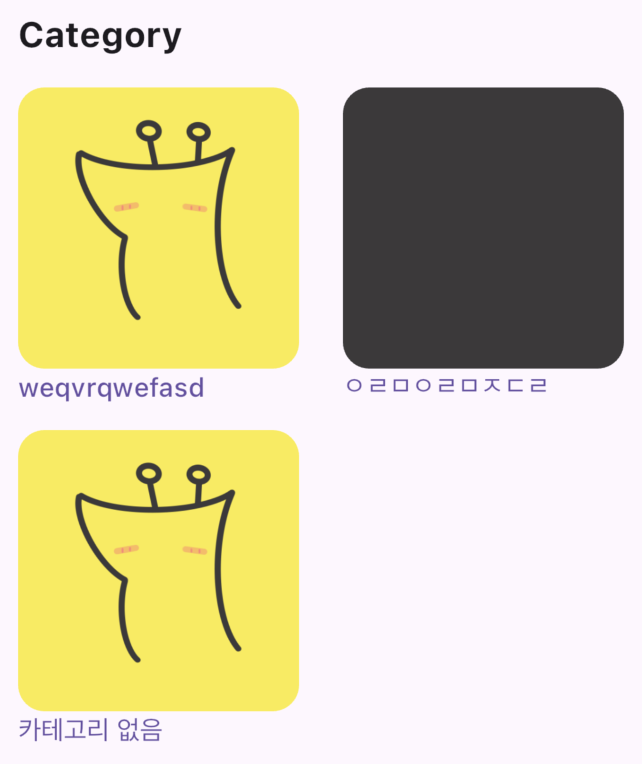 만약 카테고리 리스트의 갯수가 2로 딱 나눠진다면 CategoryListRow()에서 총 두 개의 타일이 출력되게 끔