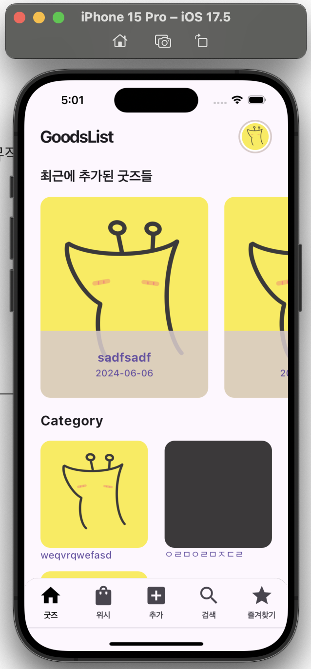 그리고 빈 굿즈에 담긴 텅 빈 썸네일을 출력하는 방식으로, 빈 카테고리의 썸네일을 출력합니다.