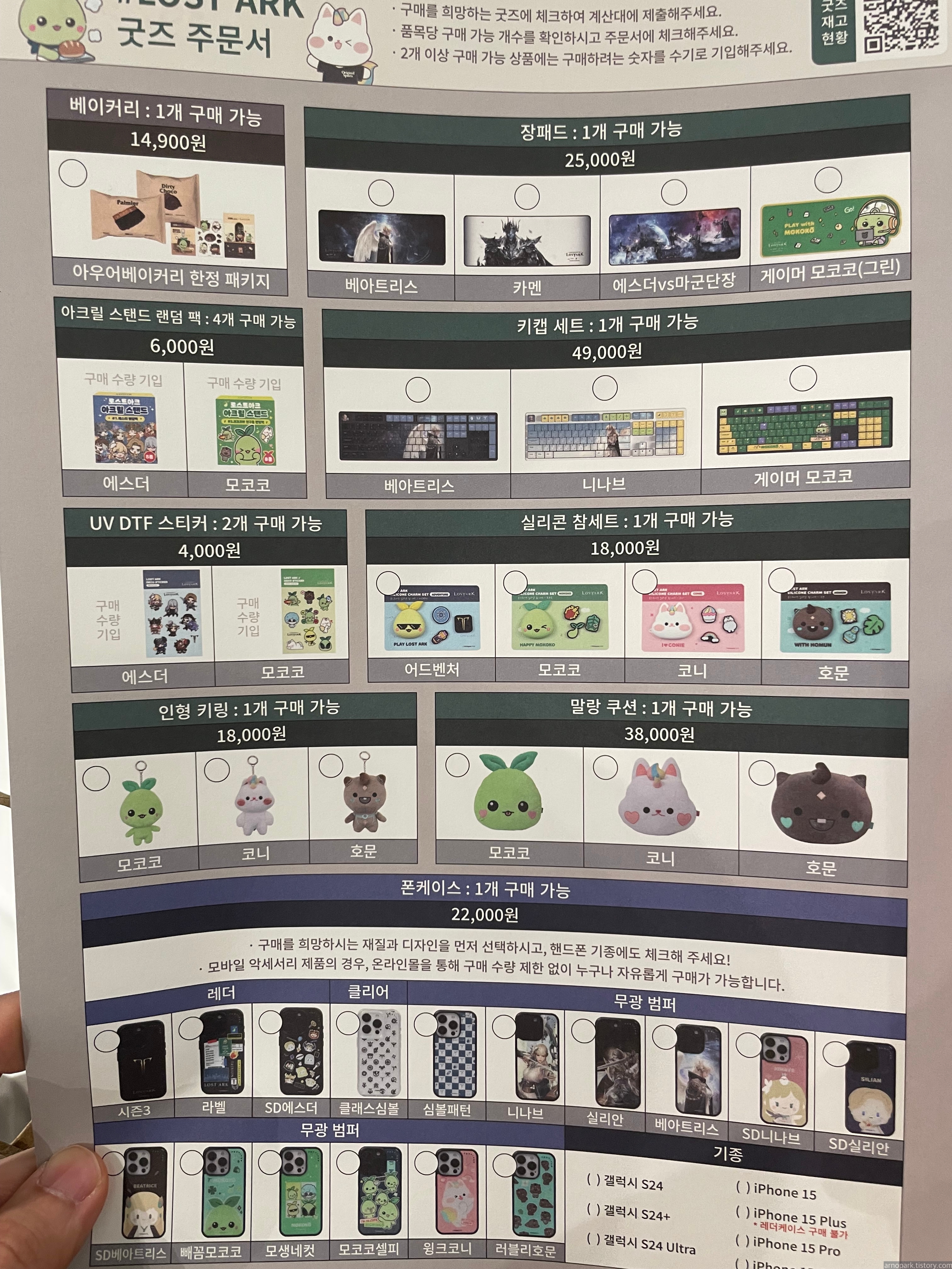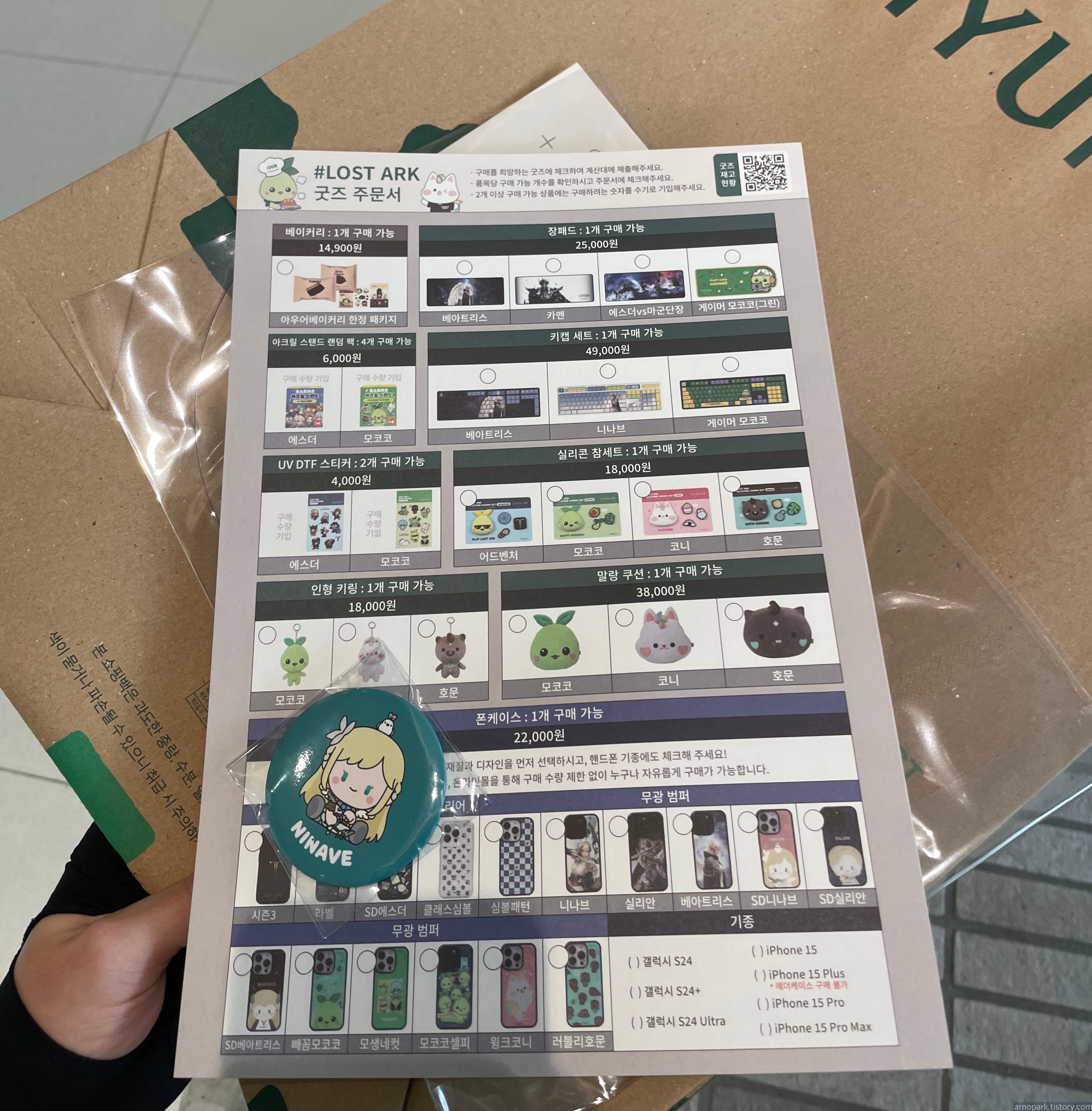 굿즈를 따로 장바구니에 직접 담아서 결제를 하는 게 아니라, 실물을 확인한 후 주문서에 체크를 하면 따로 갖다주는 형식으로 판매를 진행했습니다.