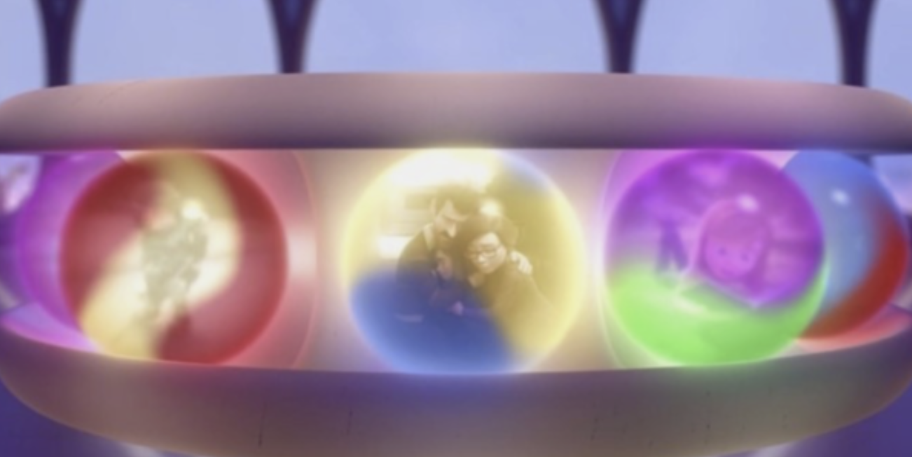 기쁨이는 컨트롤 타워에 돌아갈 수 없는 온갖 억까에 시달리면서 좌절을 하는데, 그때 큰 발견을 한다. ‘기쁜 기억이라고 생각했는데, 원래는 슬픈 기억이었던 기억'을 발견한다. 원래는 ‘친구들한테 헹가레를 받으면서 행복해 하는 기억’이었는데, 기억을 되감기하니 ‘부모님께 울면서 위로를 받는 장면'이 나온다. 구슬의 색깔도 노란색이었다가 파란색이 된다. 그리고 반대로 기억을 재생하면 파란색이 노란색으로 변한다. 그때 깨닫는다. 기억은 하나의 감정으로 정해지는 것이 아니고 복합적인 기억이 존재하며, 다른 감정을 통해서 기쁨을 이끌어 낼 수 있다는 사실을 말이다. 그리고 그러한 기억이 더 큰 기쁨과 아름다움을 자아낼 수 있다는 사실까지 말이다.