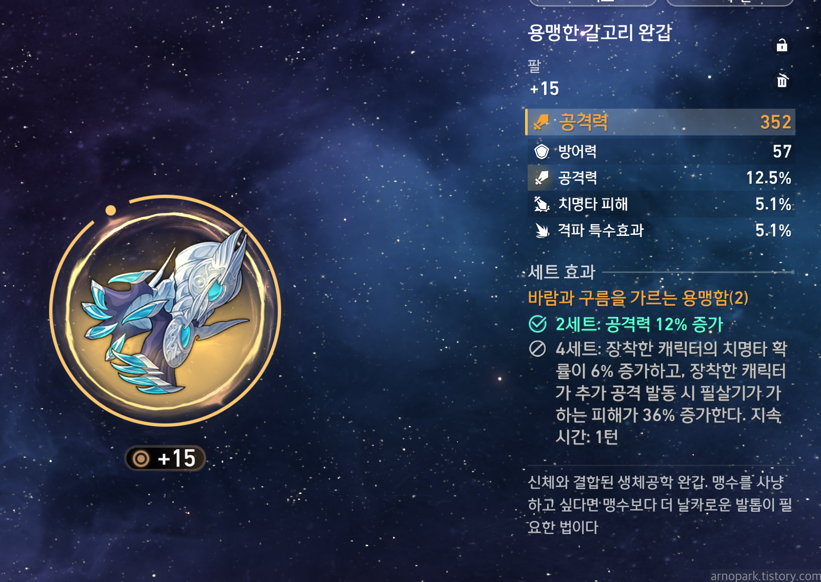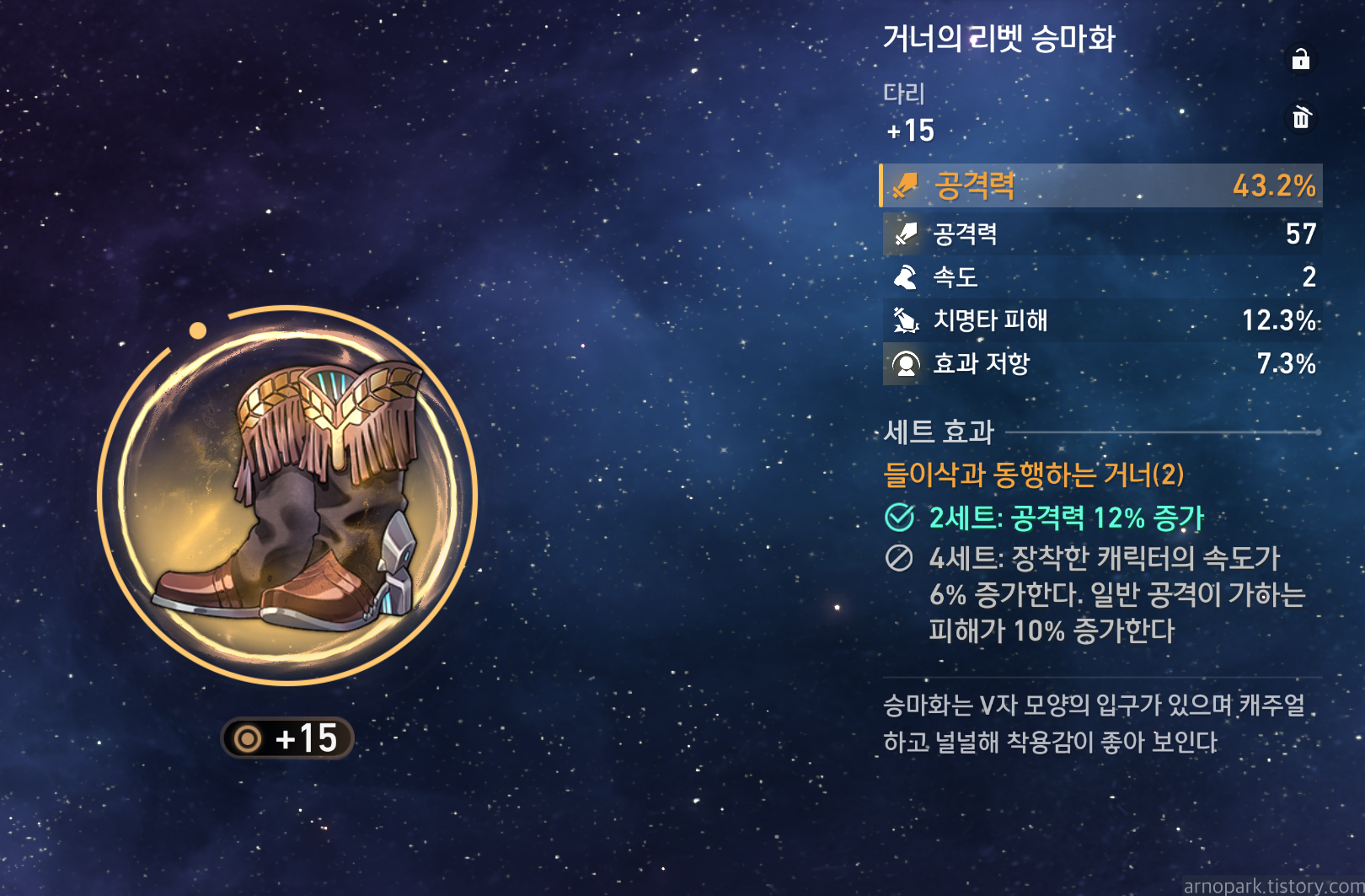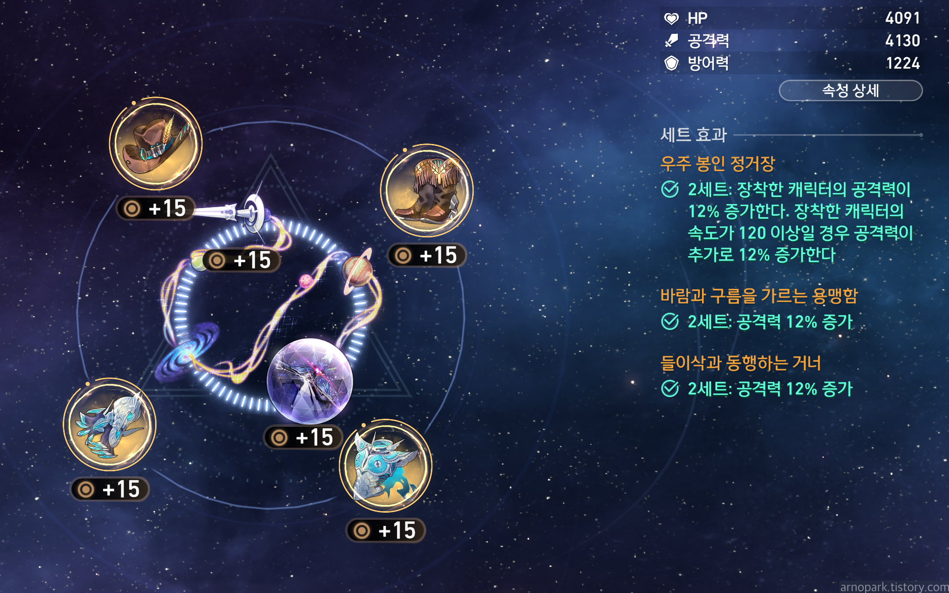 2세트로 공격력 증가를 제공하는 세트 : 돌이삭과 동행하는 거너, 바람과 구름을 가르는 용맹함, 깊은 감옥에 수감된 죄수