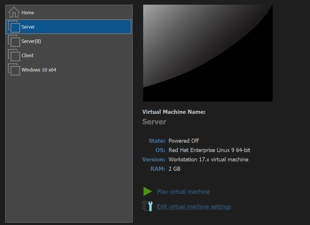 Server, Server(B), Client는 Red Hat Enterprise Linux 9 64-bit로 지정합니다.