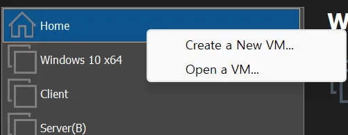 [Home]을 우클리한 후, Create a New VM을 누릅니다.