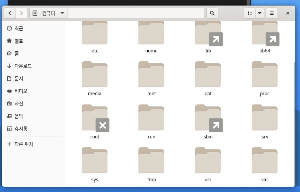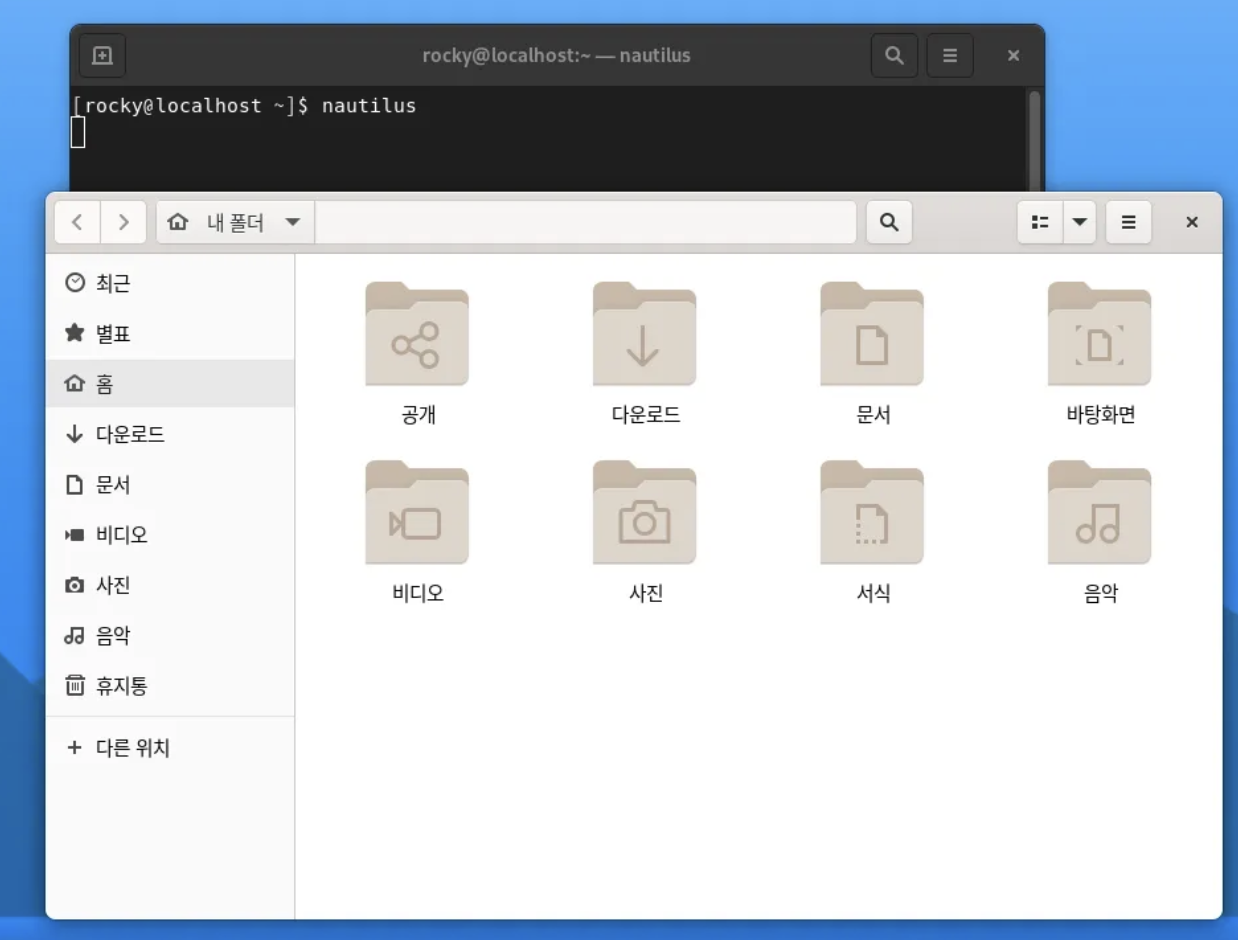 윈도우의 탐색기, 맥의 파인더처럼, Rocky Linux는 노틸러스라는 파일브라우저를 사용합니다.