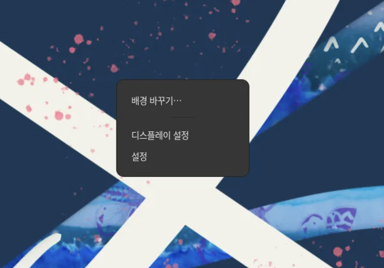 바탕화면을 우클릭하면, '배경 바꾸기'가 뜹니다.