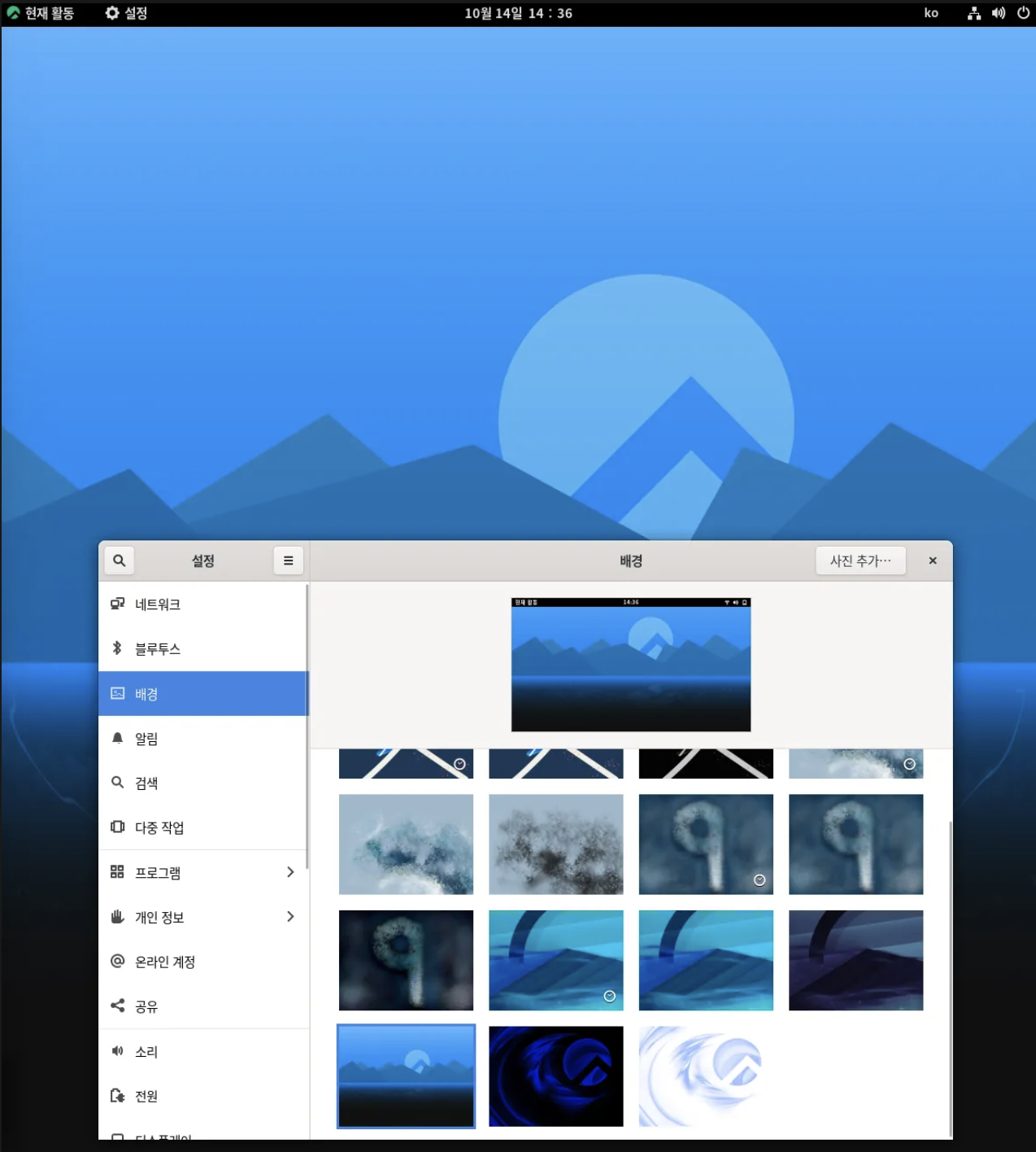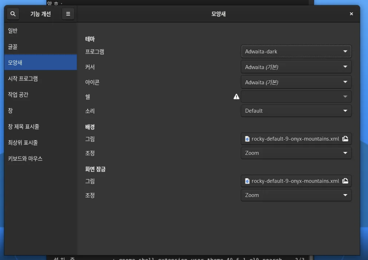 Rocky Linux가 기본으로 제공하는 배경화면들을 확인하고, 적용할 수 있습니다.