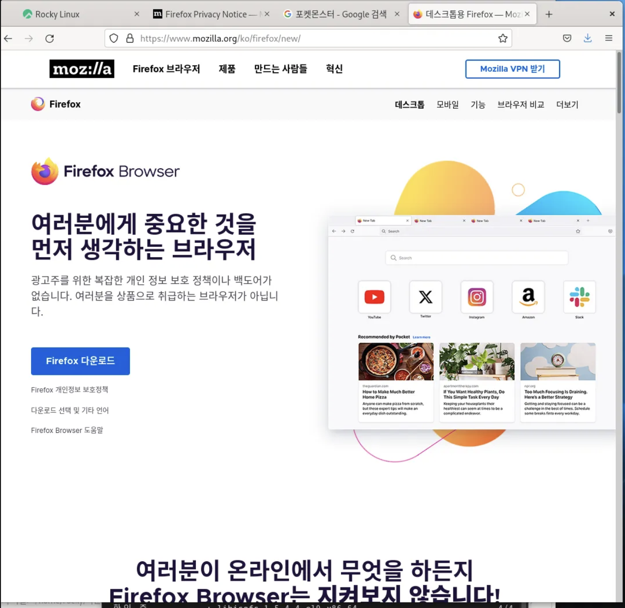 Rocky Linux를 설치하면 기본 브라우저로 파이어폭스가 설치됩니다.