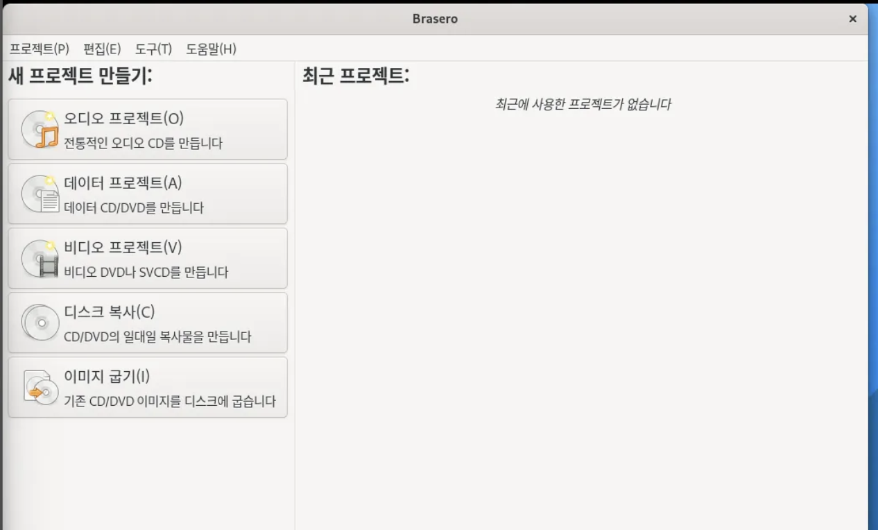 brasero에서 각종 CD/DVD를 구울 수 있는데,