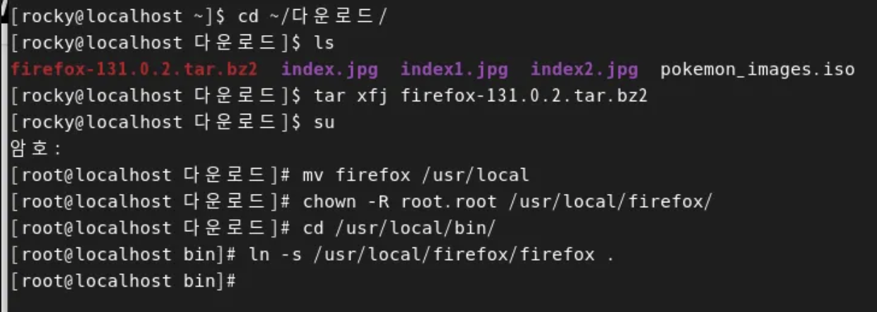 # tar xfJ firefox-버전.tar.bz2