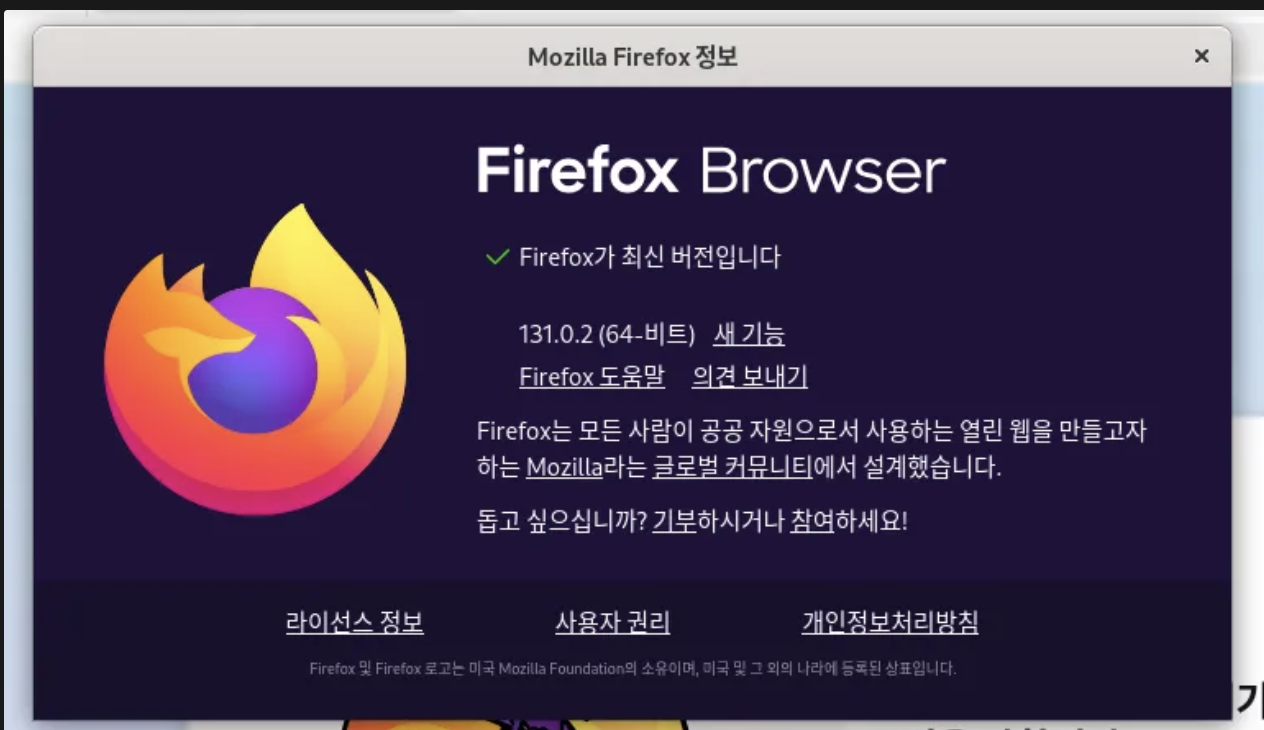 이제 firefox를 실행하면, 최신버전으로 실행됩니다.