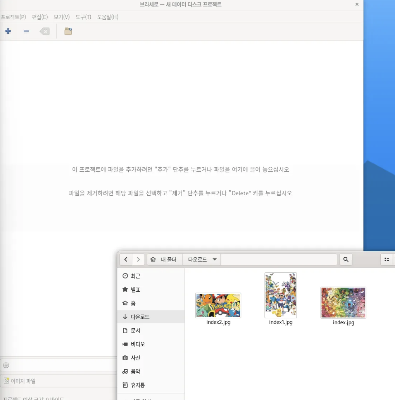 파일 레코딩 패키지인 Brasero를 다운받습니다.