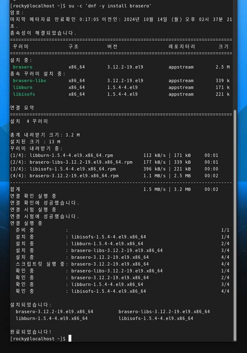 $ su -c 'dnf -y install brasero'